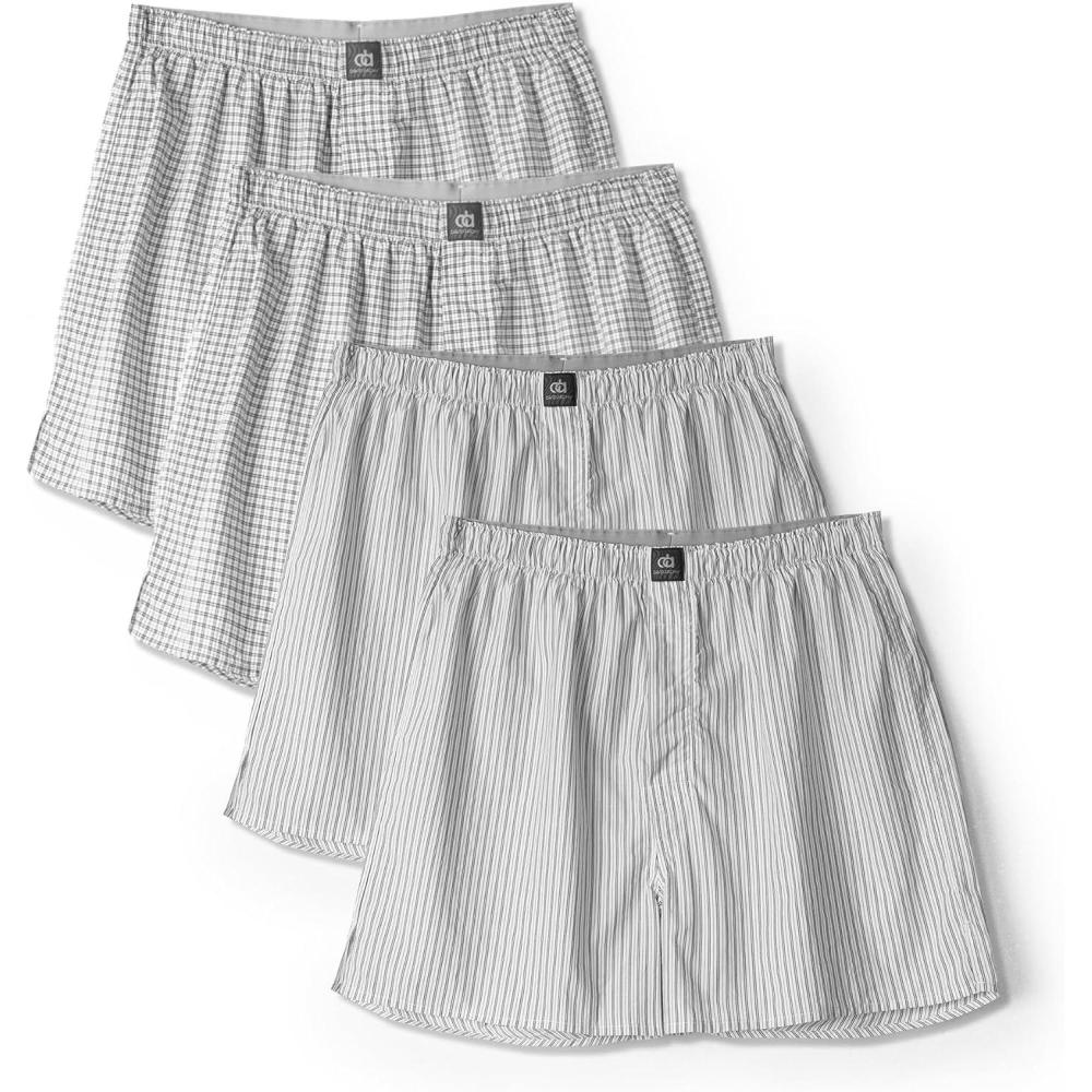 DAVID ARCHY 100% Cotton Woven Boxers Shorts with Button Fly Soft Underwear for Men 2/4 Pack(White Stripe*2/White Grid*)