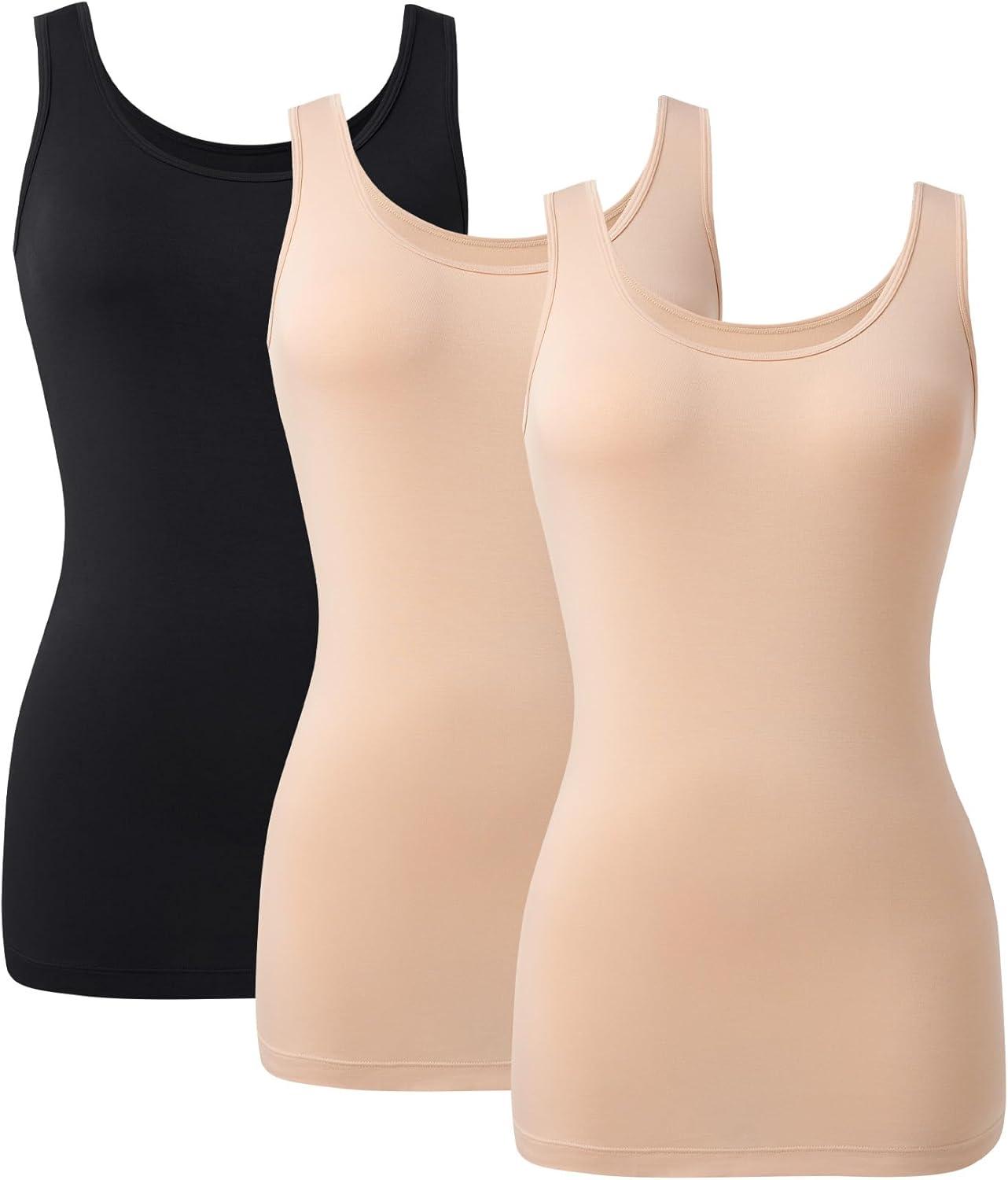 DAVID ARCHY Camisole Tops for Women Bamboo Rayon Soft Breathable Women’s Undershirts 3 Pack Layering, Lounge, Sleepwear(Black/Nude)