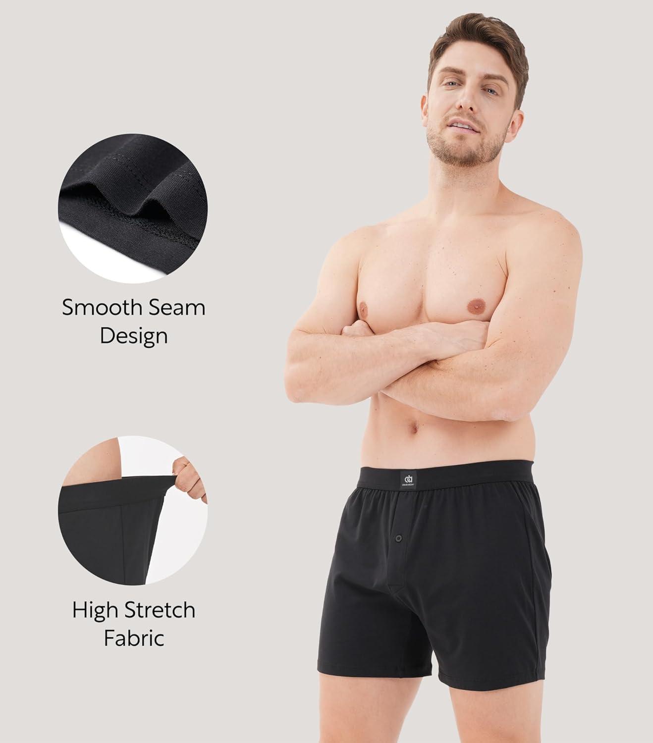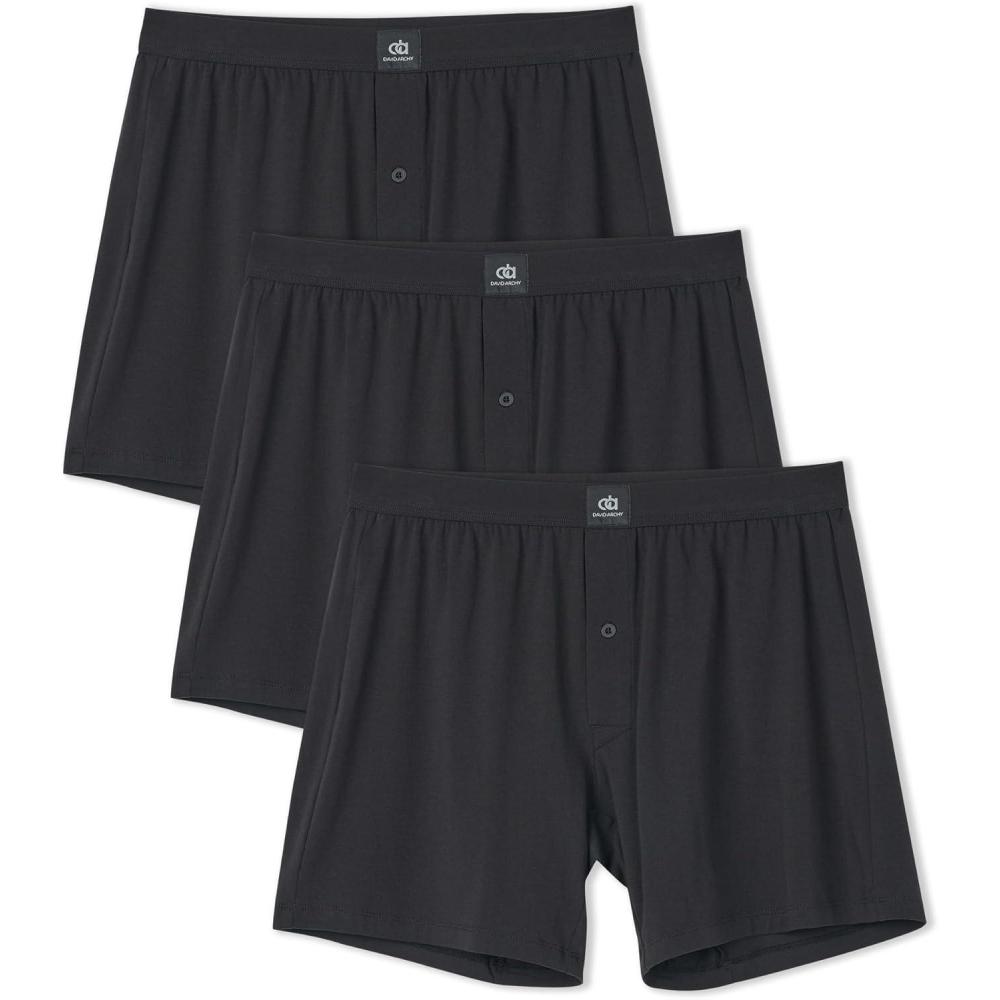 DAVID ARCHY Combed Cotton Boxers for Men Loose Fit Men's Underwear Soft Men's Boxer Shorts for Men 3 or 5 Pack(A1 Black*3)