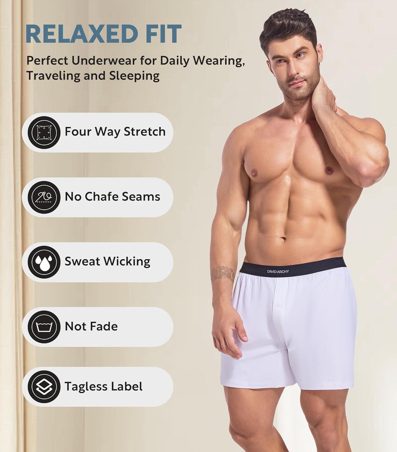 DAVID ARCHY Combed Cotton Boxers for Men Soft Underwear Mens Boxers Knit Boxer Shorts for Men Pack(A6 White*3)