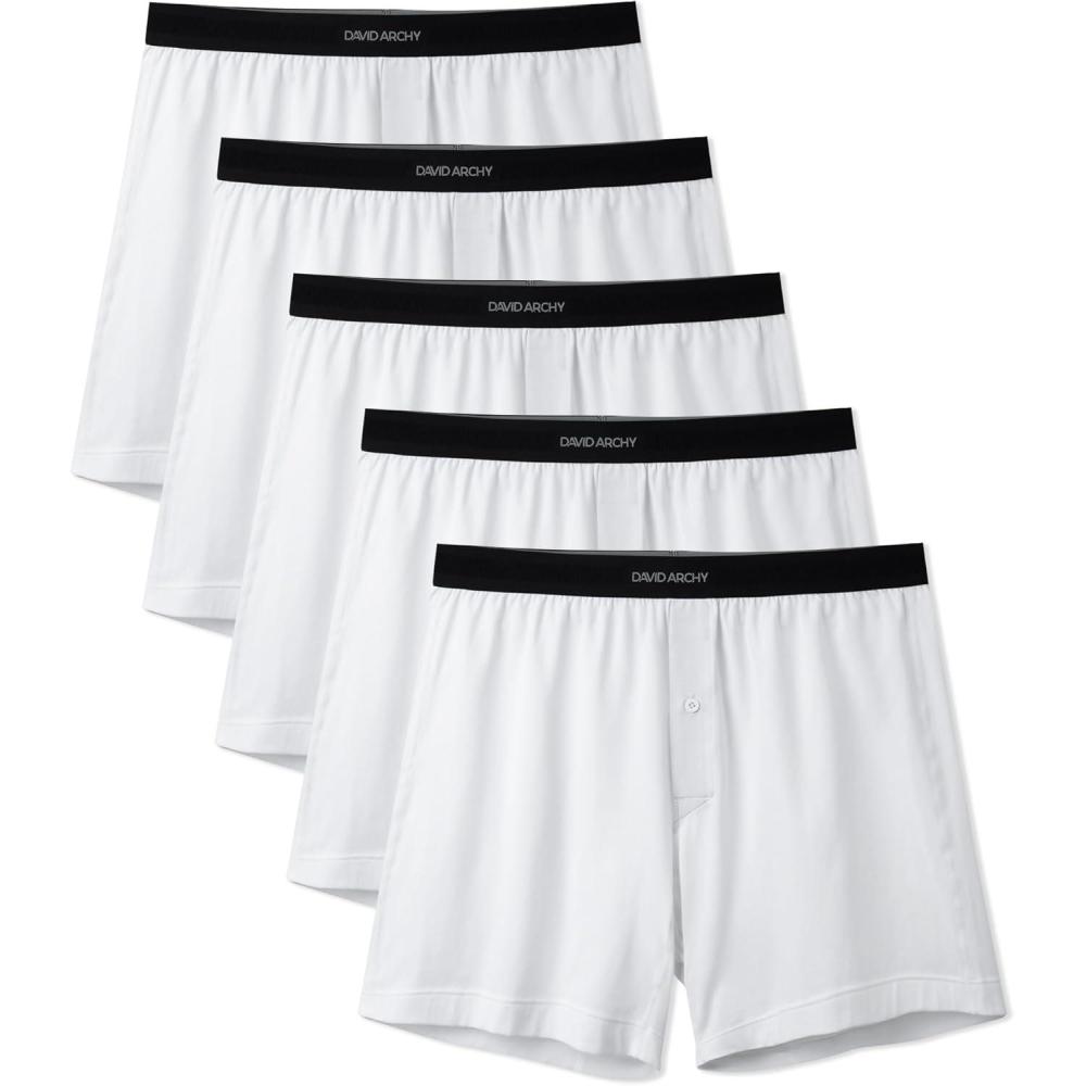 DAVID ARCHY Combed Cotton Boxers for Men Soft Underwear Mens Boxers Knit Boxer Shorts for Men Pack(B1 White*5)