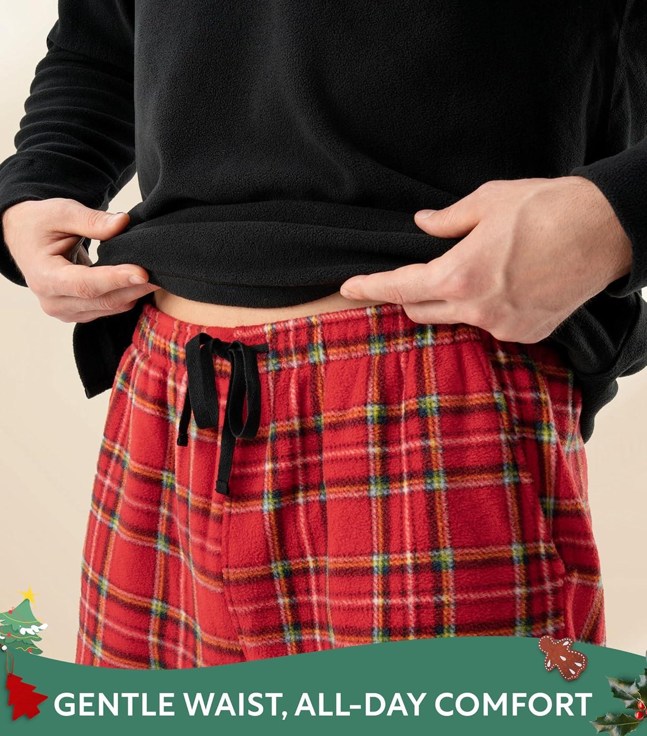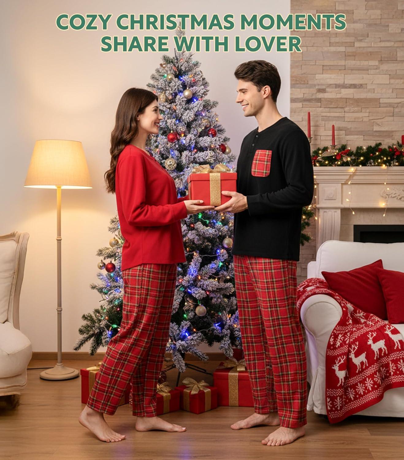 DAVID ARCHY Cozy Christmas Pajamas for Couples Ultra Soft Warm Fleece Winter Pjs Sets Men Women Plaid Loungewear with Pockets(Red Top + Checkered Pants)