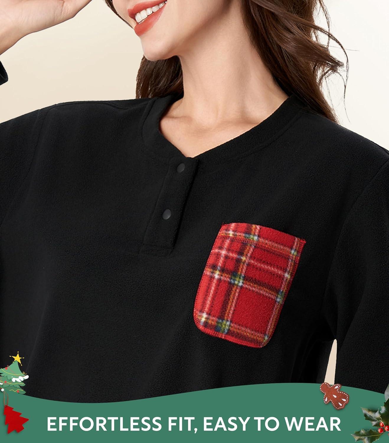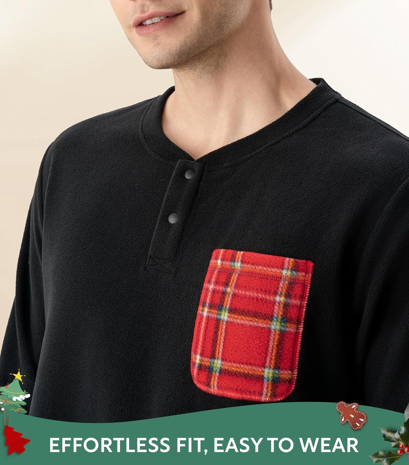 DAVID ARCHY Cozy Christmas Pajamas for Couples Ultra Soft Warm Fleece Winter Pjs Sets Men Women Plaid Loungewear with Pockets(Black Top + Checkered Pants)