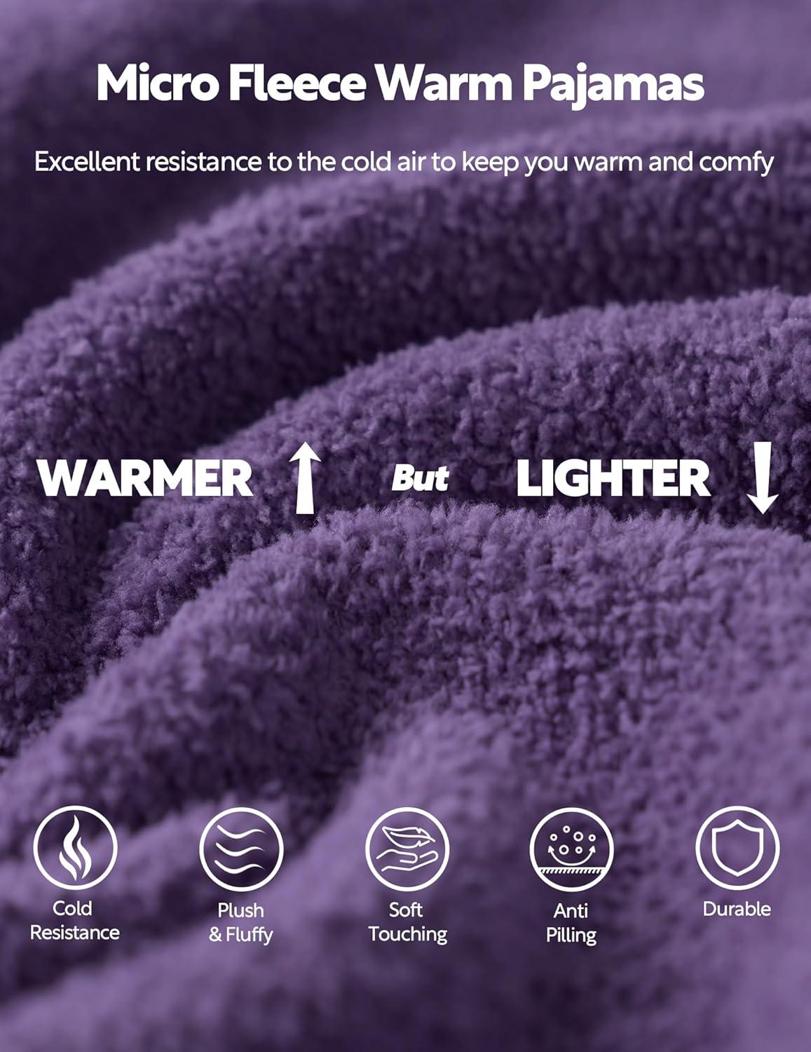 DAVID ARCHY Fleece Pajamas for Women Warm Fuzzy Winter Cozy Soft Comfy Long Sleeve 2 Peices Pj Sets Sleepwear Loungewear(Round-purple)