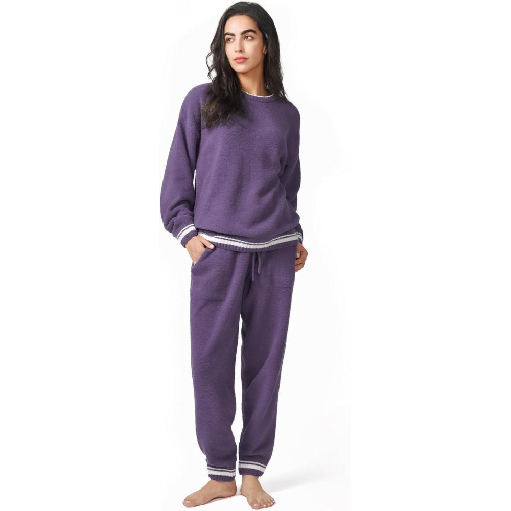 imageDAVID ARCHY Fleece Pajamas for Women Warm Fuzzy Winter Cozy Soft Comfy Long Sleeve 2 Peices Pj Sets Sleepwear LoungewearRoundpurple