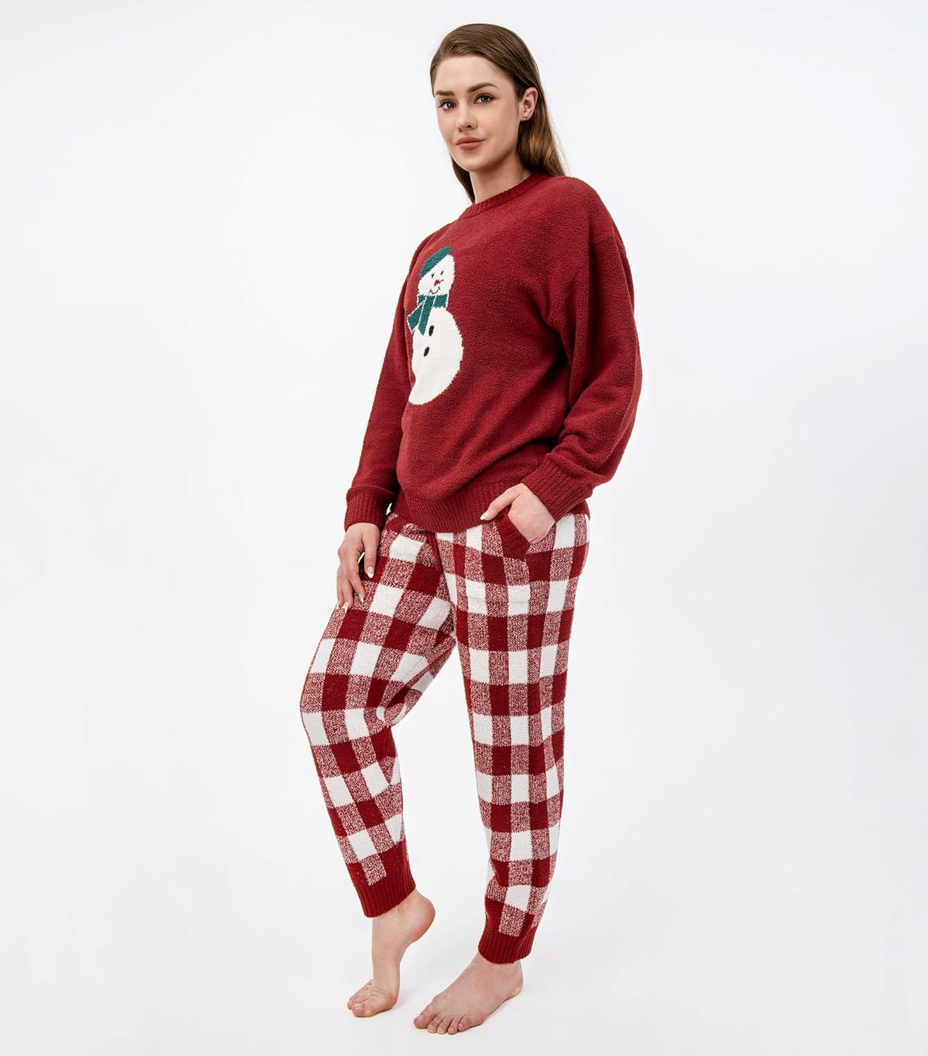 DAVID ARCHY Fleece Pajamas for Women Warm Fuzzy Winter Cozy Soft Comfy Long Sleeve 2 Peices Pj Sets Sleepwear Loungewear(Round-snowmen)