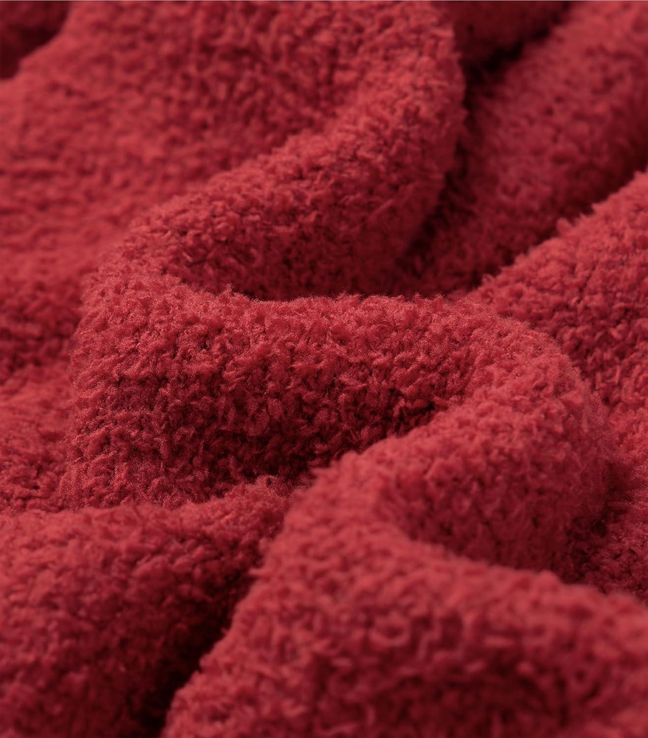 DAVID ARCHY Fleece Pajamas for Women Warm Fuzzy Winter Cozy Soft Comfy Long Sleeve 2 Peices Pj Sets Sleepwear Loungewear(Round-red)
