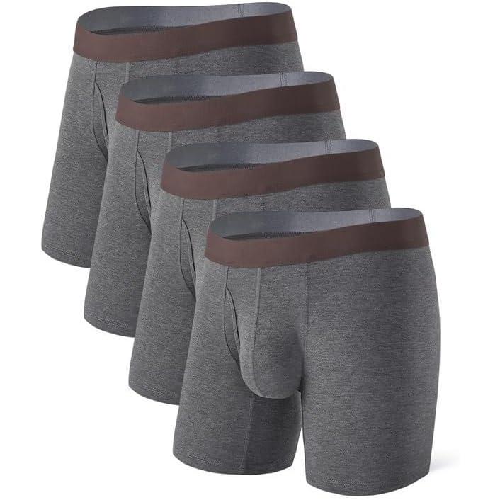 DAVID ARCHY Mens Boxer Briefs Rayon Made From Bamboo Breathable Soft Underwear Support Pouch Underwear for Men 4 Pack(Dark Gray)