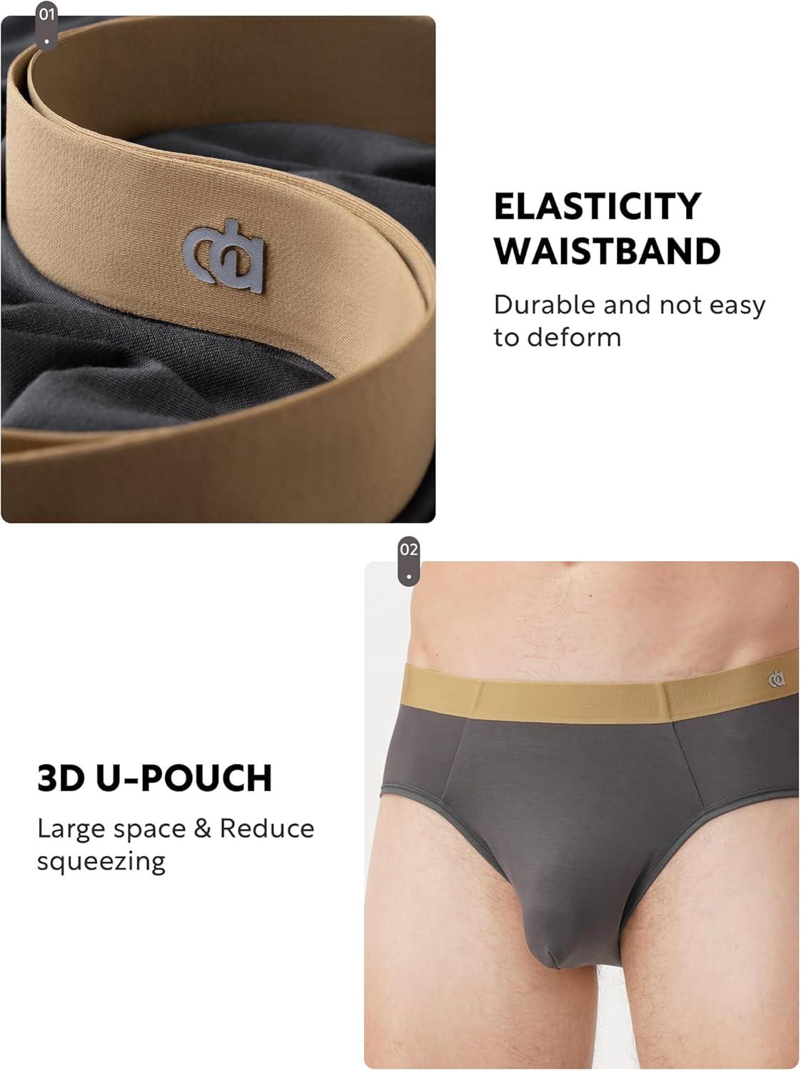 DAVID ARCHY Men’s Briefs Rayon Made From Bamboo Soft Seamless Underwear Support Pouch No Fly Briefs for Men 4 Pack(Grey Blue/Black/Dark Grey/Grey Purple)