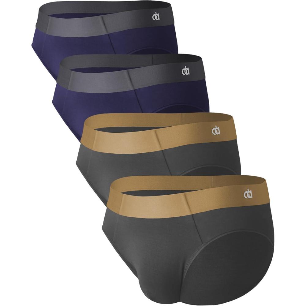 DAVID ARCHY Men’s Briefs Rayon Made From Bamboo Soft Seamless Underwear Support Pouch No Fly Briefs for Men 4 Pack(Dark Blue/Dark Grey)