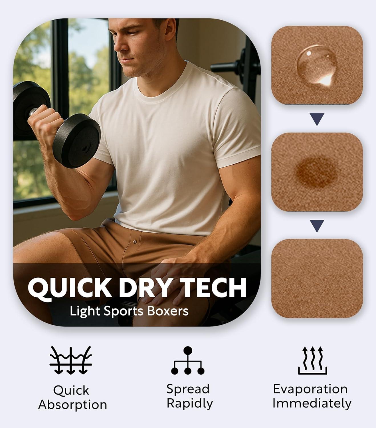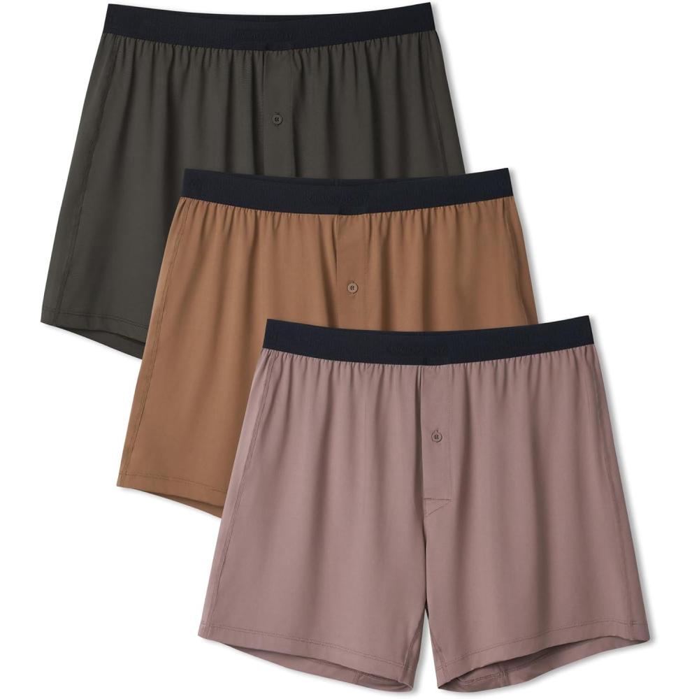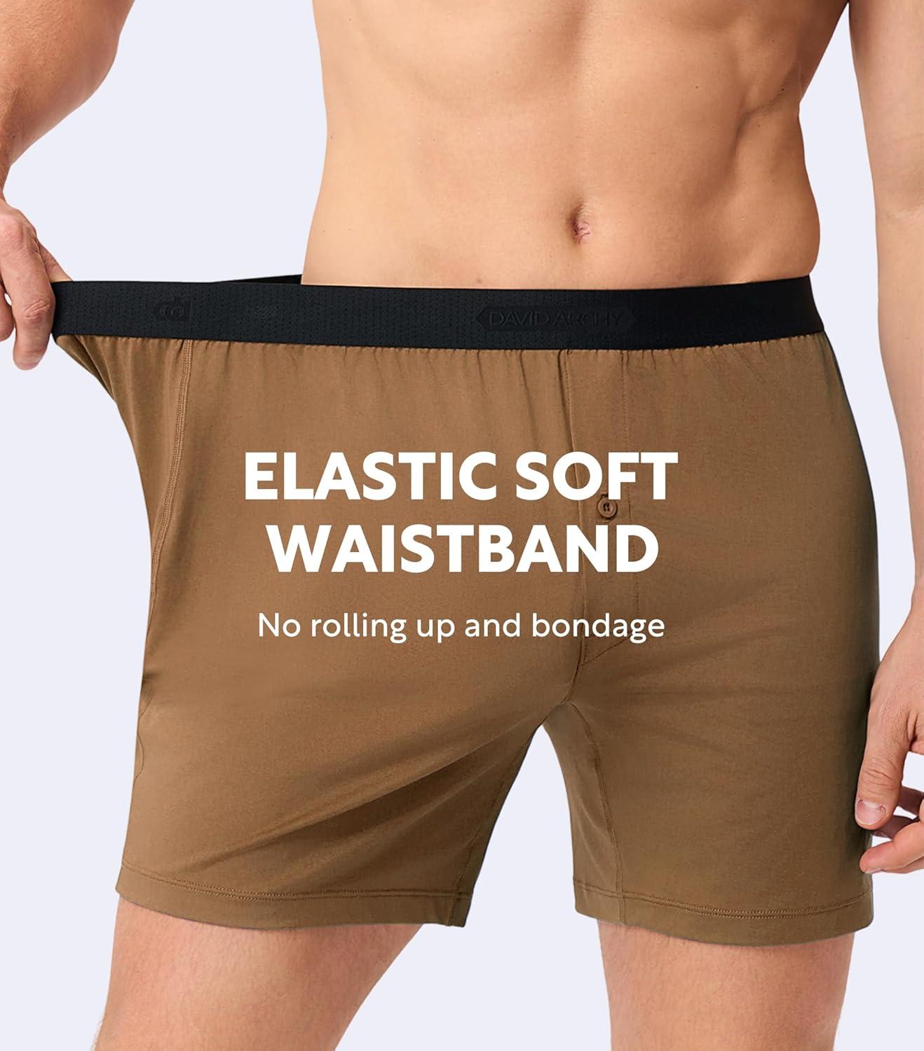 DAVID ARCHY Men’s Light Sports Boxer Shorts Underwear Breathable and Cool Boxers with Button Fly 3 or 5 Pack(Camel/Dark Khaki/Olive Green)