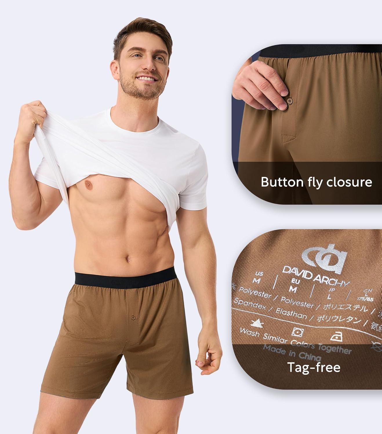 DAVID ARCHY Men’s Light Sports Boxer Shorts Underwear Breathable and Cool Boxers with Button Fly 3 or 5 Pack(Assorted Color)