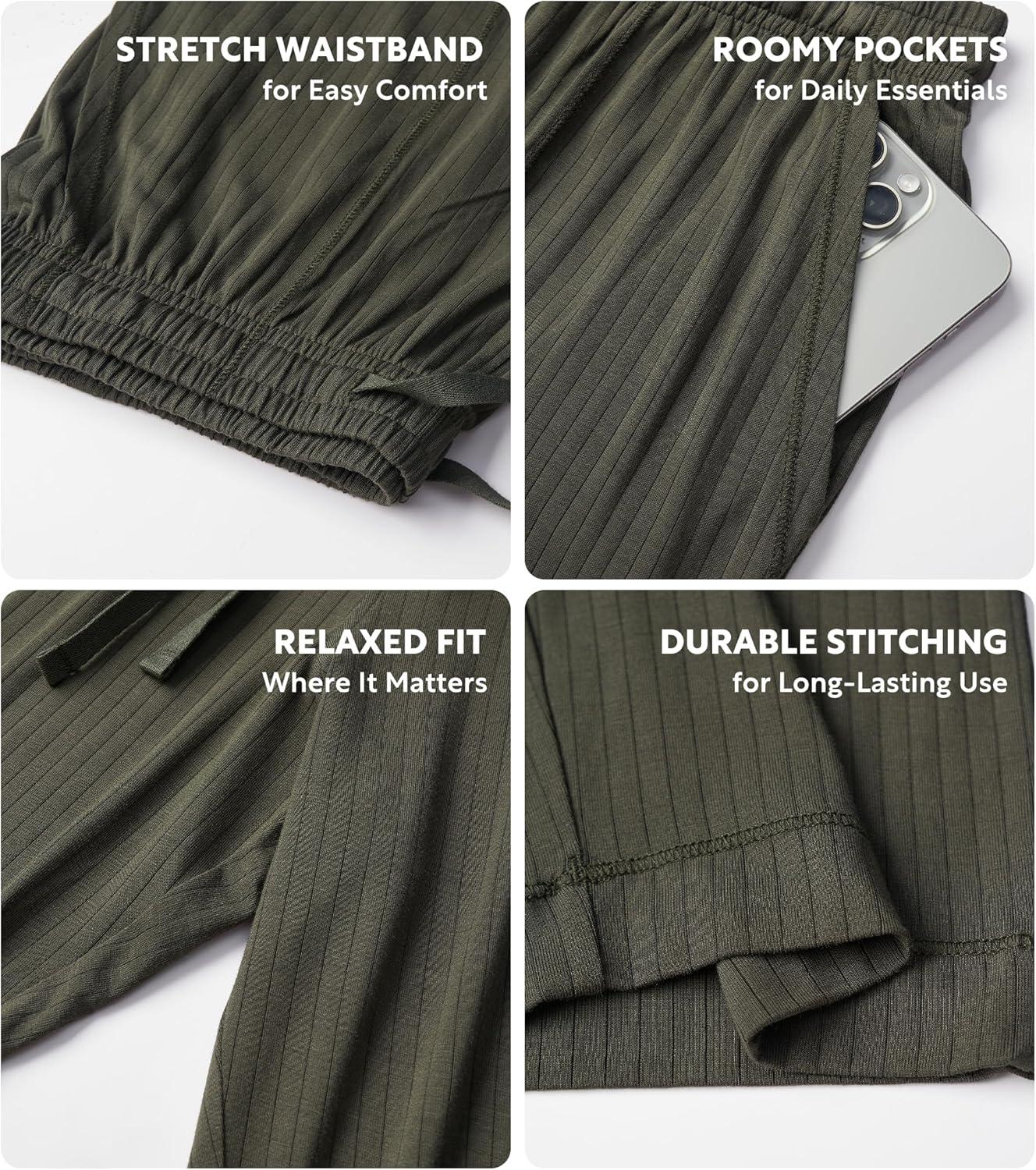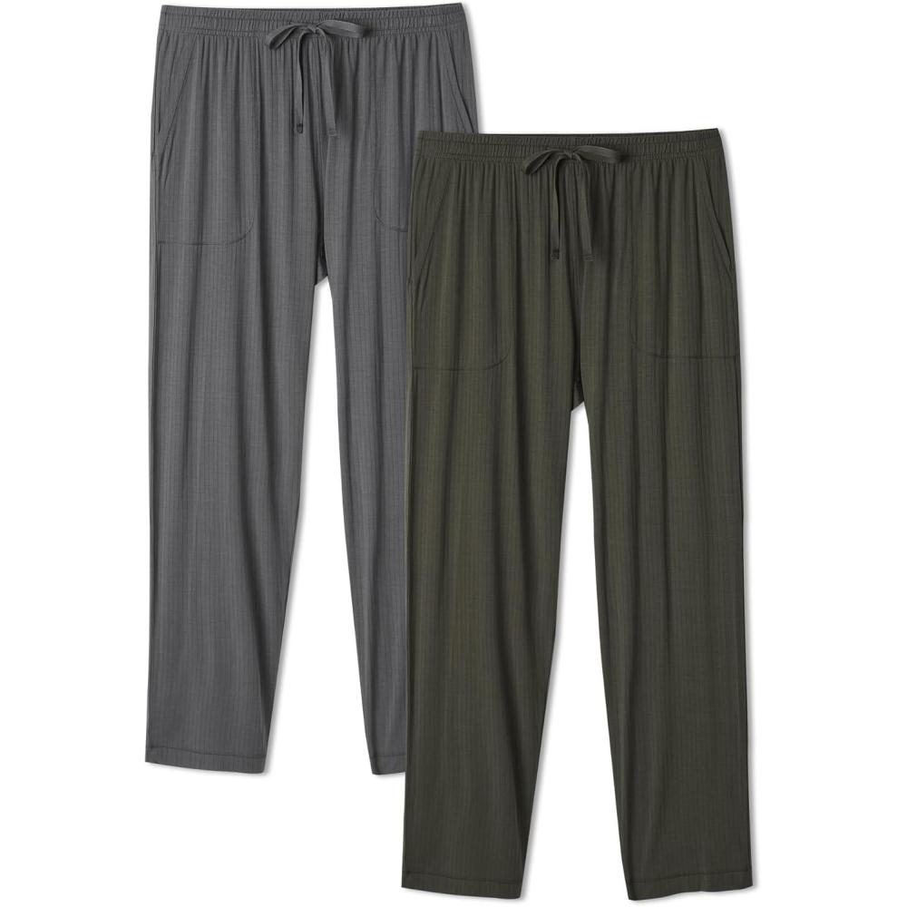 DAVID ARCHY Mens Pajama Pants Bamboo Rayon Lightweight Knit Sleep Bottoms, Soft Lounge Pants with Pockets PJs, 2 Pack(Dark Gray/Olive Green)