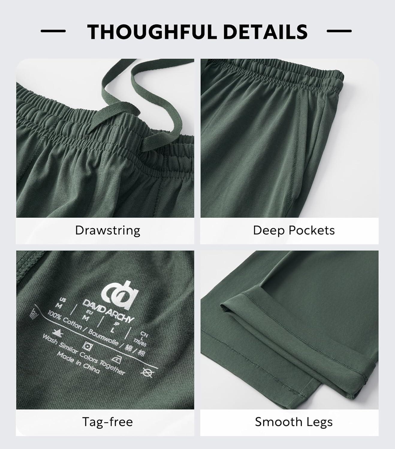 imageDAVID ARCHY Mens Pajama Pants Cotton Comfy Sleep Bottoms Lightweight Lounge Pants with Pockets Soft Sleepwear PJs 2 PackBlackOliver Greenwide Leg Opening