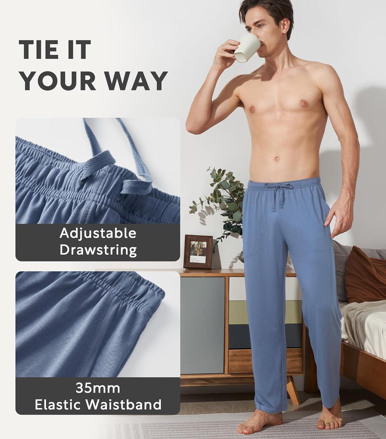 DAVID ARCHY Mens Pajama Pants, Men’s Pj Sleep Pants Pajama Silky Soft Lightweight Lounge Pants with Pocket 2 Pack(Dusty Blue/Navy Blue)