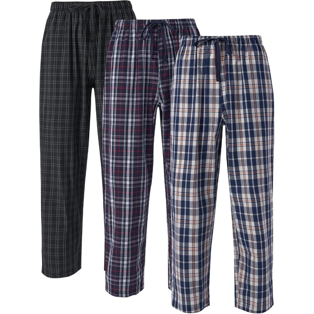 DAVID ARCHY Mens Pajama Pants Soft Cotton Plaid Sleepwear, Comfy Lounge Woven Pajamas Bottoms PJ Pant for Men, 3 pack(A – Navy Red Mini Plaid/Black Gray/Dusty Blue Stripe)