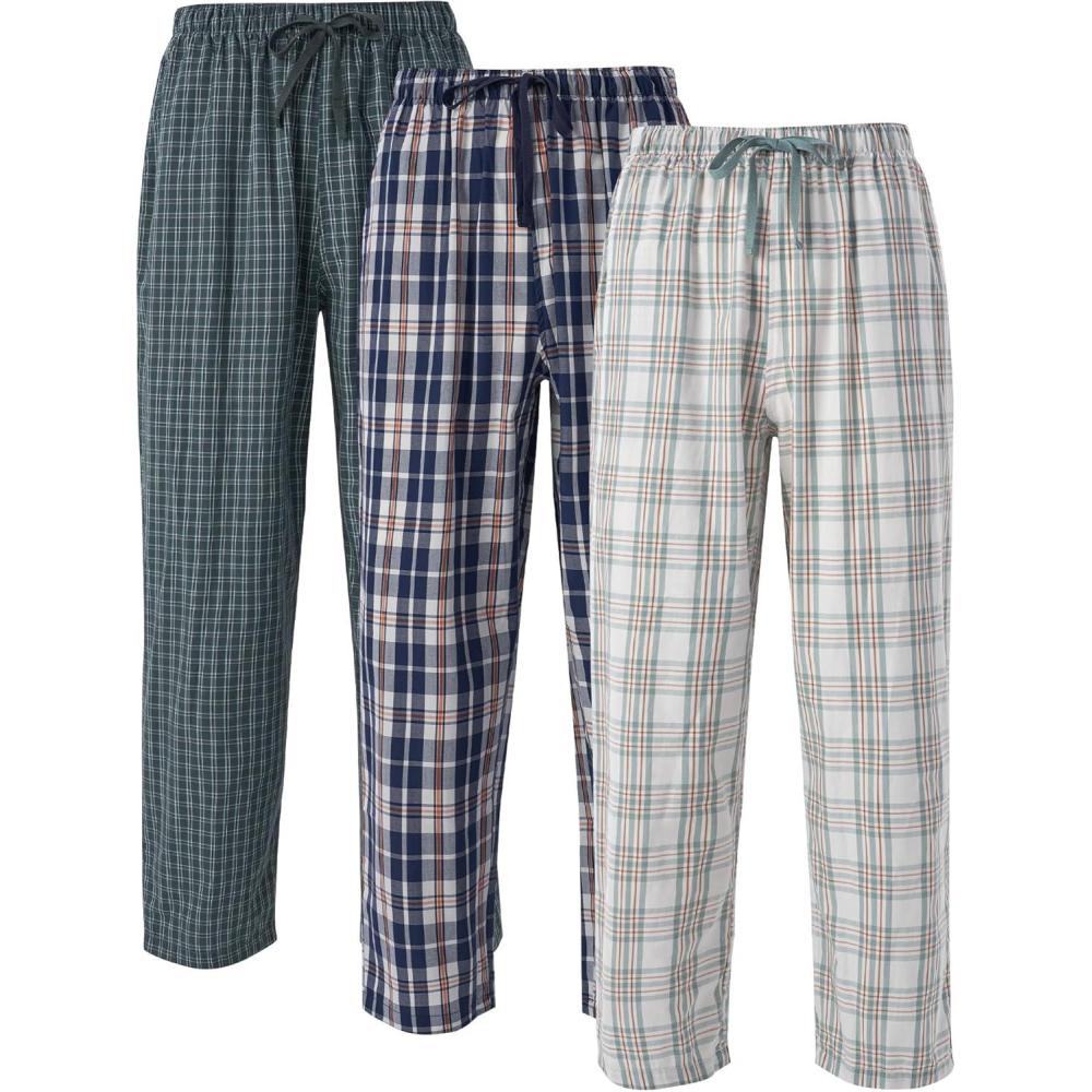 DAVID ARCHY Mens Pajama Pants Soft Cotton Plaid Sleepwear, Comfy Lounge Woven Pajamas Bottoms PJ Pant for Men, 3 pack(B - Gray Green/Beige Khaki/Navy Cream)