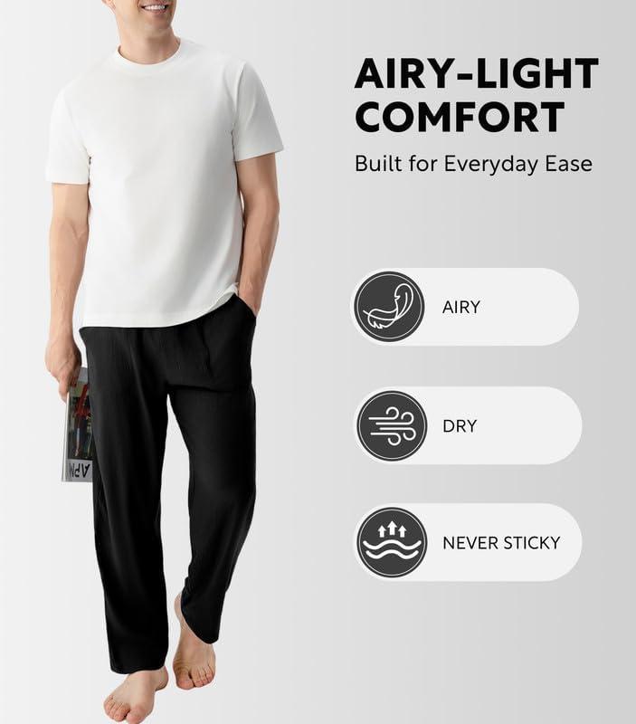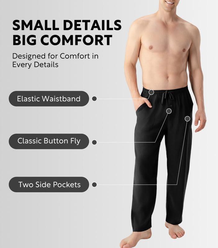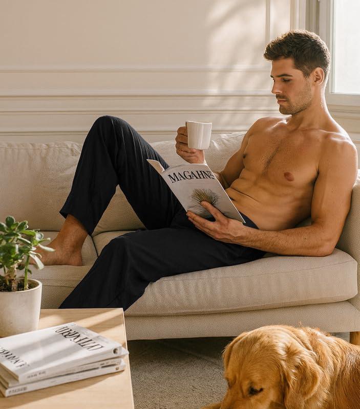 Discover a pair of night pants designed for every season and every moment of your day. Crafted with fine yarns, these mens pj bottoms feel smooth and gentle on the skin while staying lightweight and breathable year-round. From lounging at home and working remotely to stepping outside for a quick errand or walking the dog, these mens lightweight pajama pants deliver effortless comfort that moves with you. They won’t pill, wrinkle easily, and are simple to wash and fast to dry—making them as practical as they are comfortable. Wear them day after day, season after season, and experience the true meaning of all-day ease.