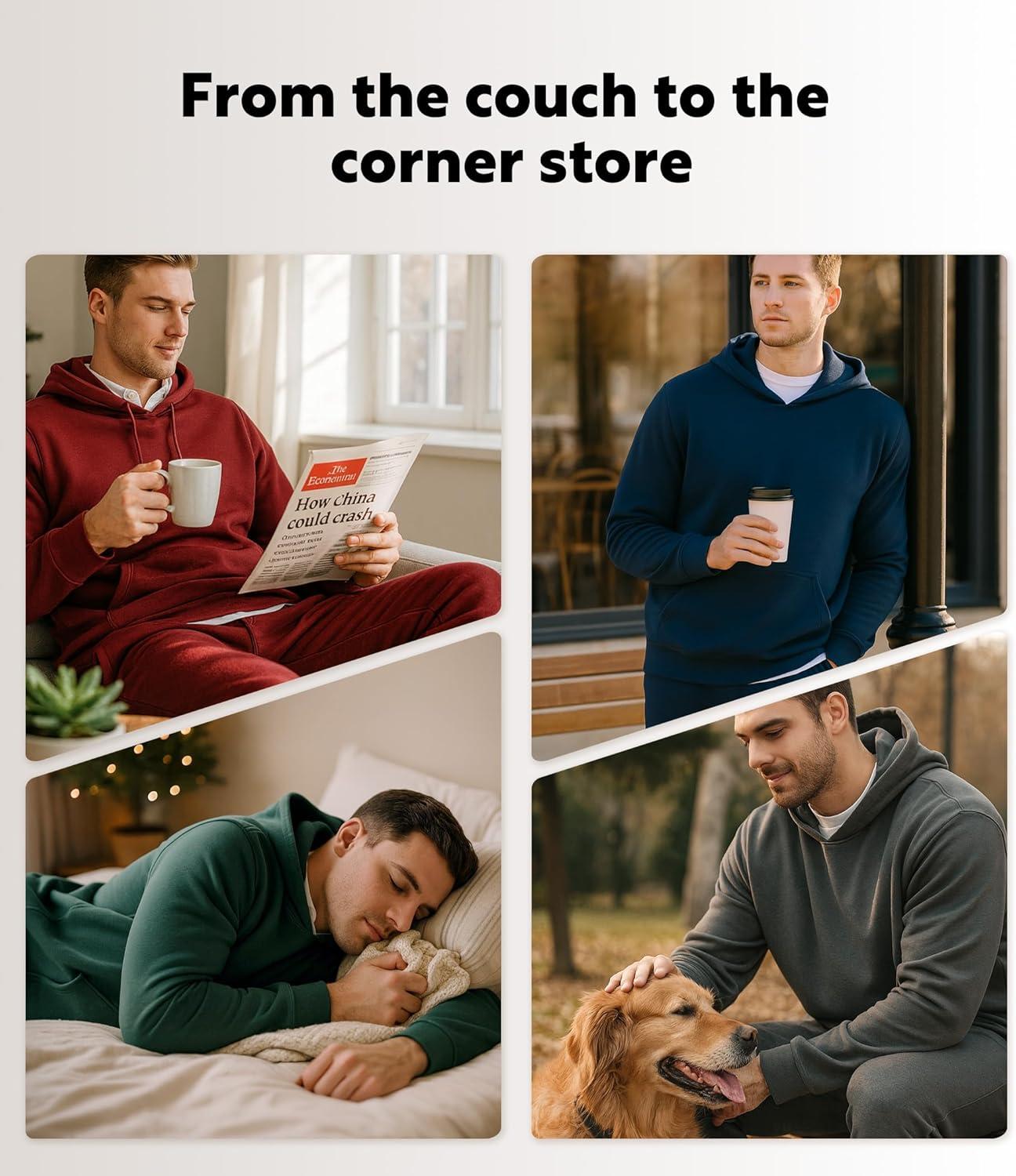 DAVID ARCHY Men’s Pajama Sets Fleece Hooded Pajamas Soft & Warm Long sleepwear Pjs Sets with Pockets(Brick Red)