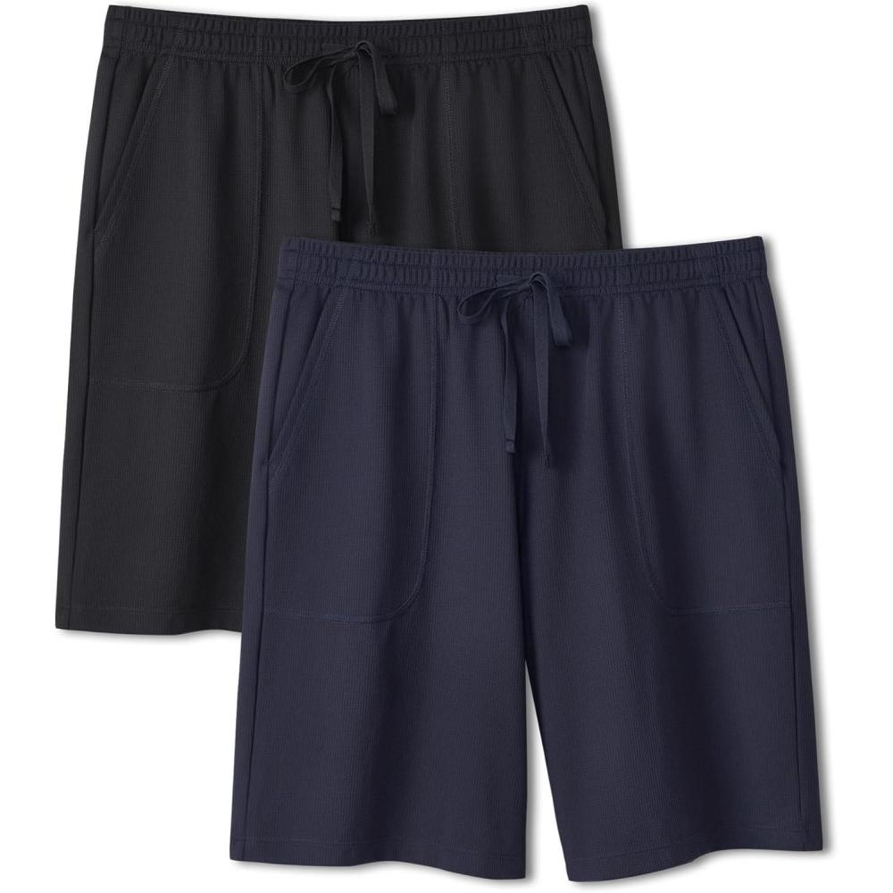 DAVID ARCHY Men’s Pajama Shorts, Soft & Lightweight Sleep Shorts, Breathable & Quick-Dry Lounge Shorts with Pockets, 2 Pack(Dark Grey+black))