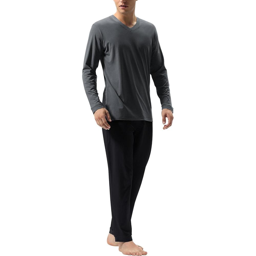 DAVID ARCHY Mens Pajamas Set Soft Cotton Long Sleeve Sleepwear Comfy Loungewear Pjs with Pockets(Dark Gray - Black)