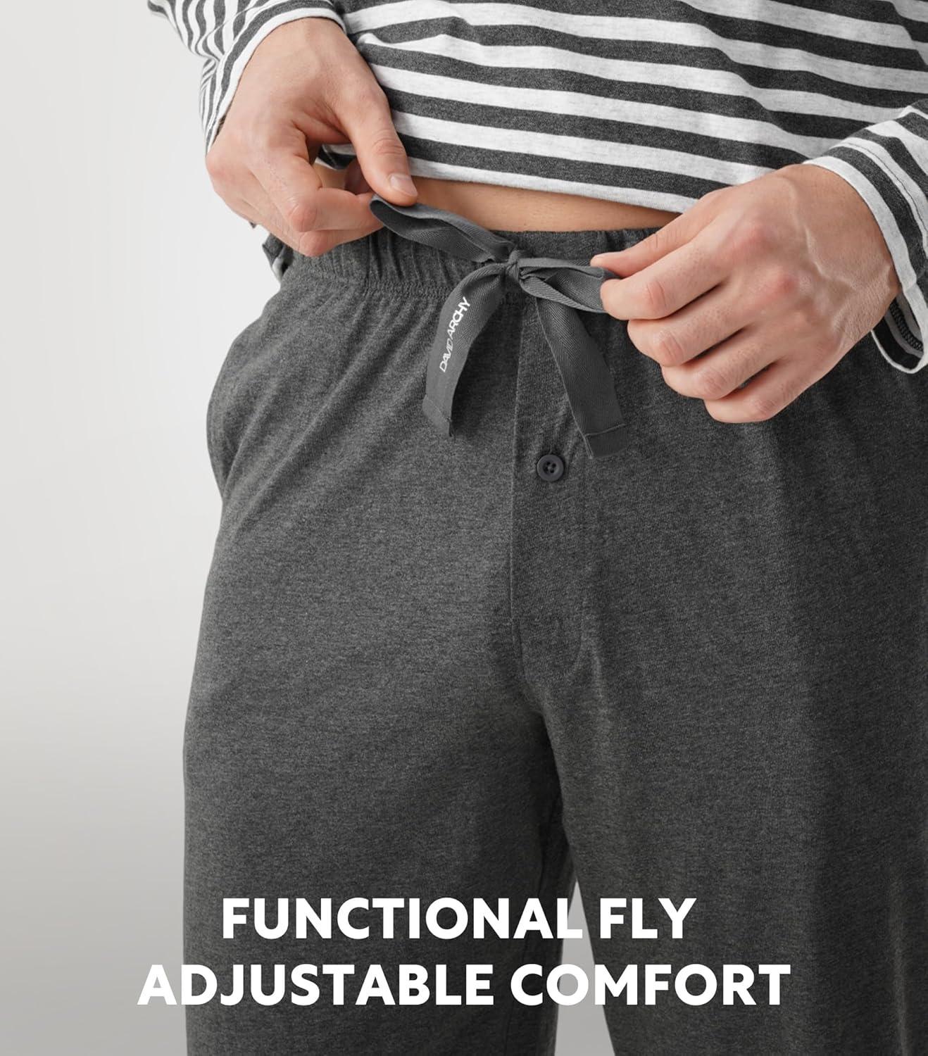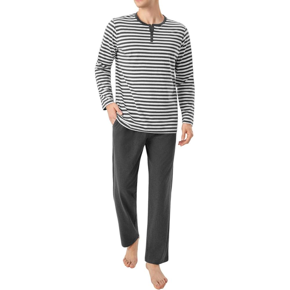 DAVID ARCHY Men’s Pajamas Set Soft Cotton Long Sleeve Sleepwear Comfy Loungewear Pjs with Pockets(Heather Black)