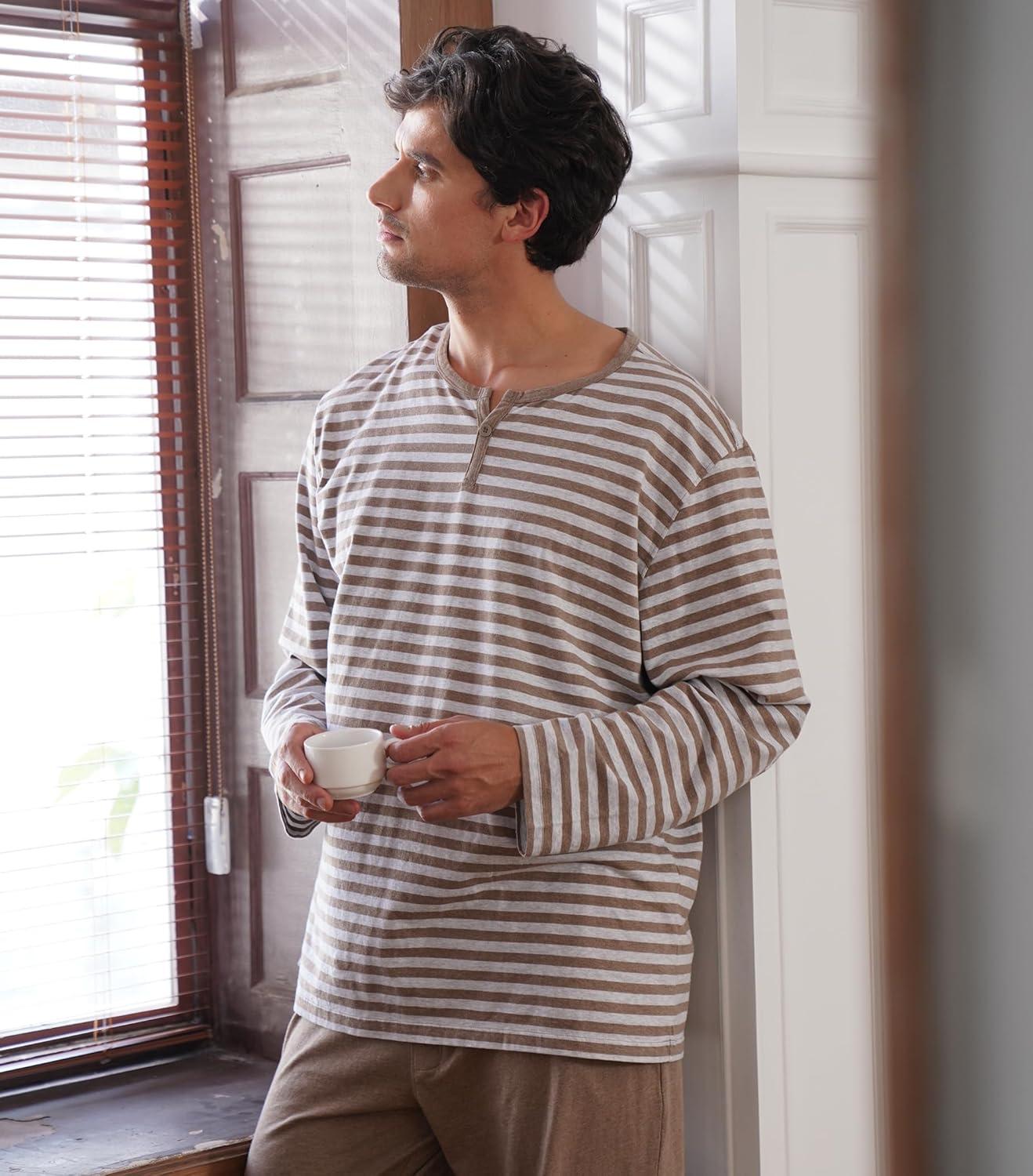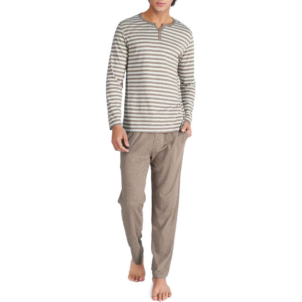 DAVID ARCHY Men’s Pajamas Set Soft Cotton Long Sleeve Sleepwear Comfy Loungewear Pjs with Pockets(Heather Dark Coffee)