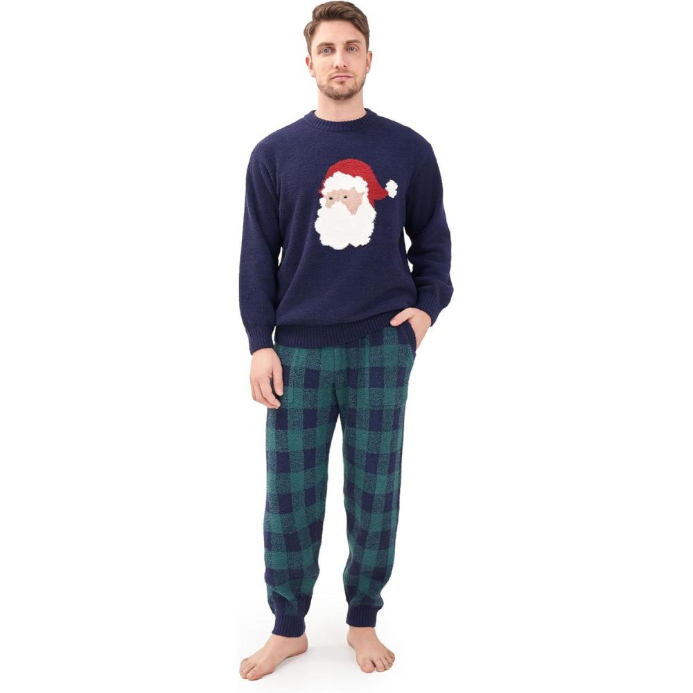 DAVID ARCHY Mens Pajamas Set Ultra-Soft Fleece Pajamas Lightweight & Breathable Sleepwear Long Sleeve Lounge Set with Pockets(Navy Blue – Christmas Pattern)