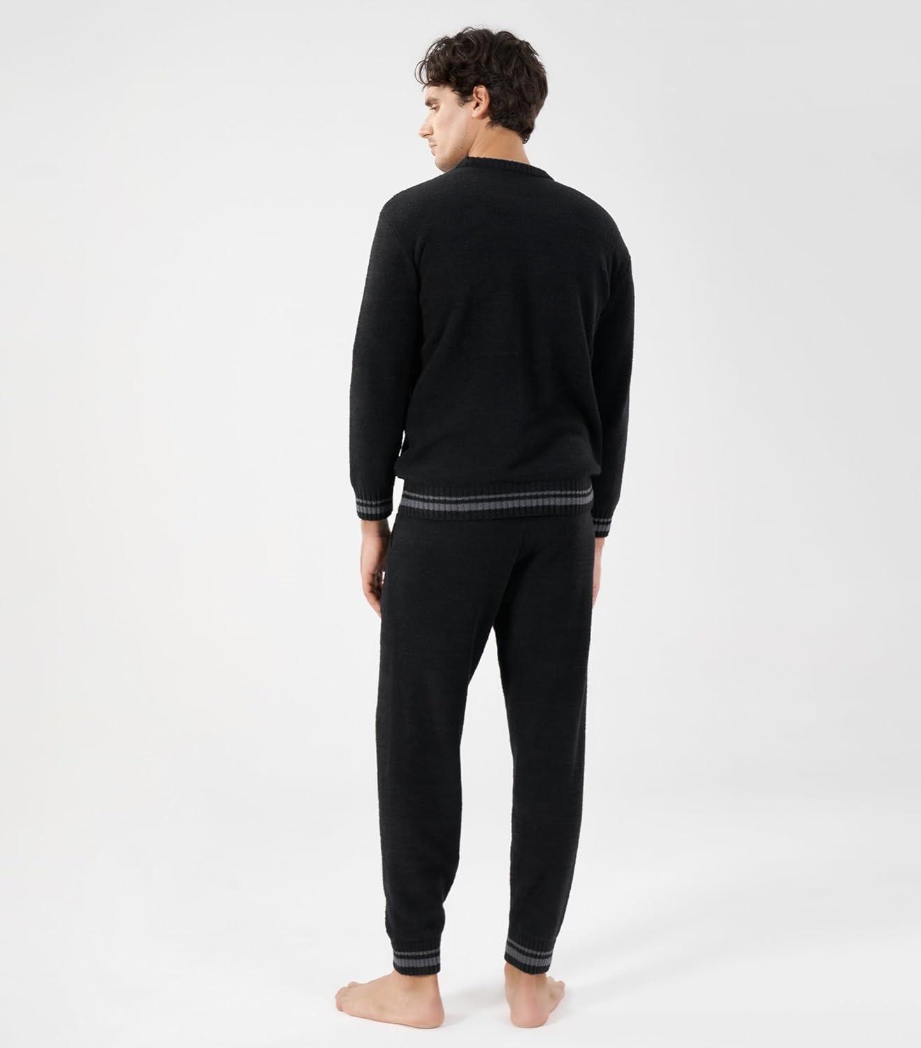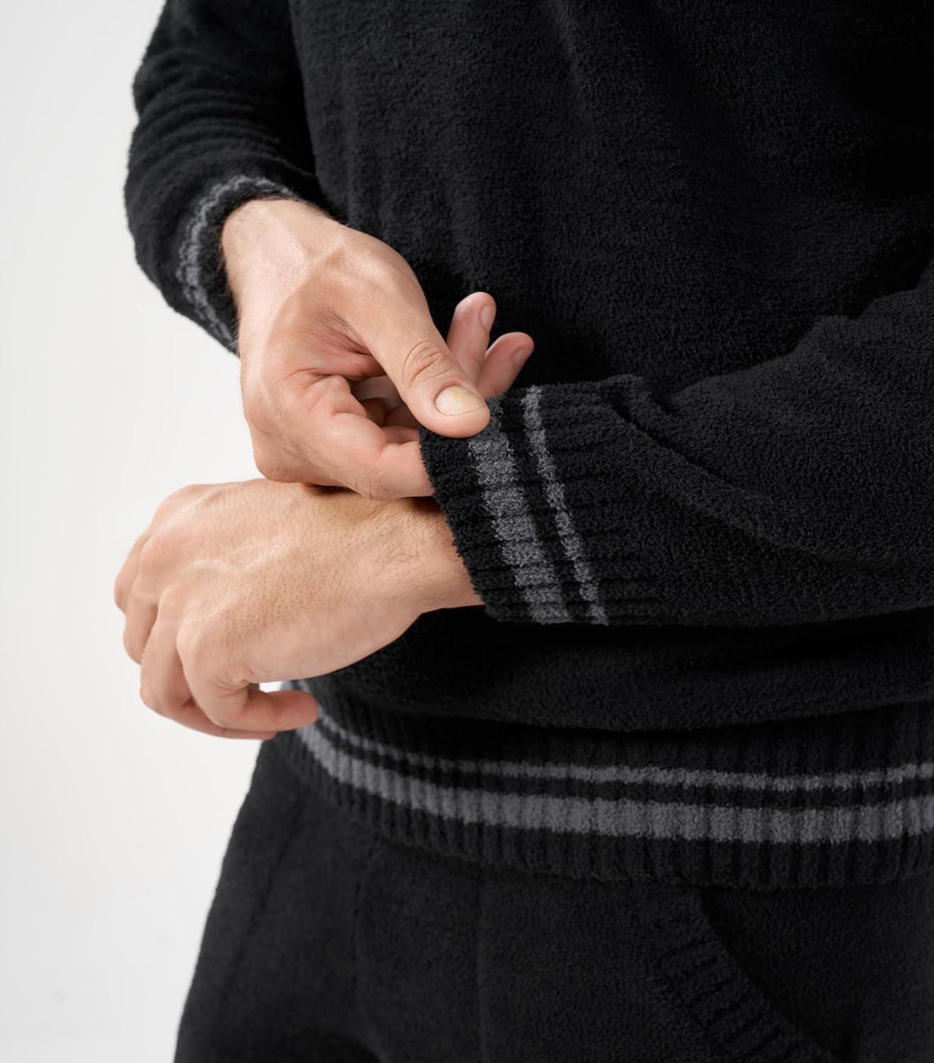 DAVID ARCHY Mens Pajamas Set Ultra-Soft Fleece Pajamas Warm Sleepwear Long Sleeve Lounge Set with Pockets(Black)