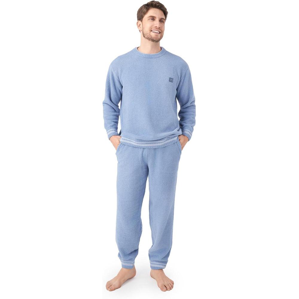 imageDAVID ARCHY Mens Pajamas Set UltraSoft Fleece Pajamas Warm Sleepwear Long Sleeve Lounge Set with PocketsGrey Blue