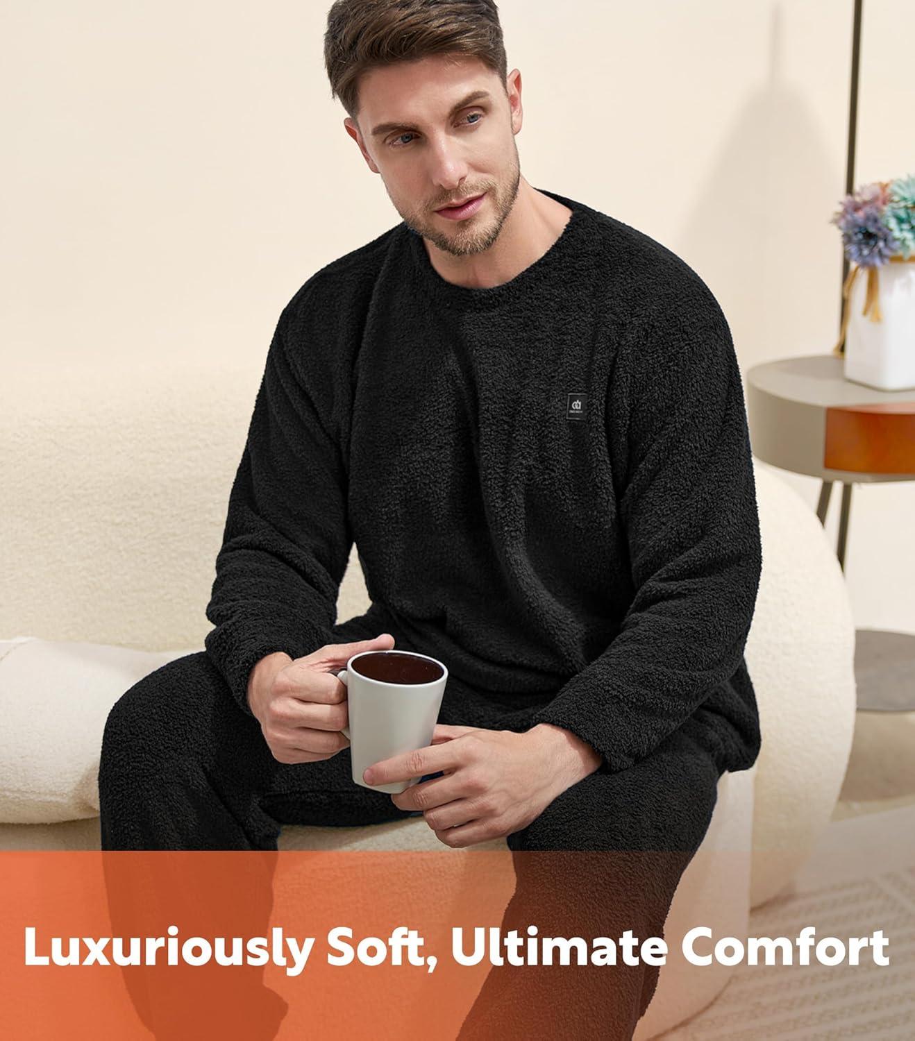 DAVID ARCHY Mens Pajamas Set, Ultra Soft Fleece Sleepwear with Roomy Pockets, Cozy Winter Loungewear for Cold Weather(Black)