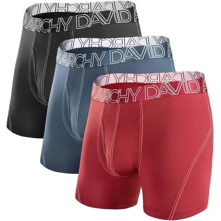 imageDAVID ARCHY Mens Performance Boxer Briefs 3 Pack 3D Support Pouch ampamp No RideUp Design MoistureWicking Sport UnderwearA3 blackMaroonMoonlight Blue  Mesh With Fly