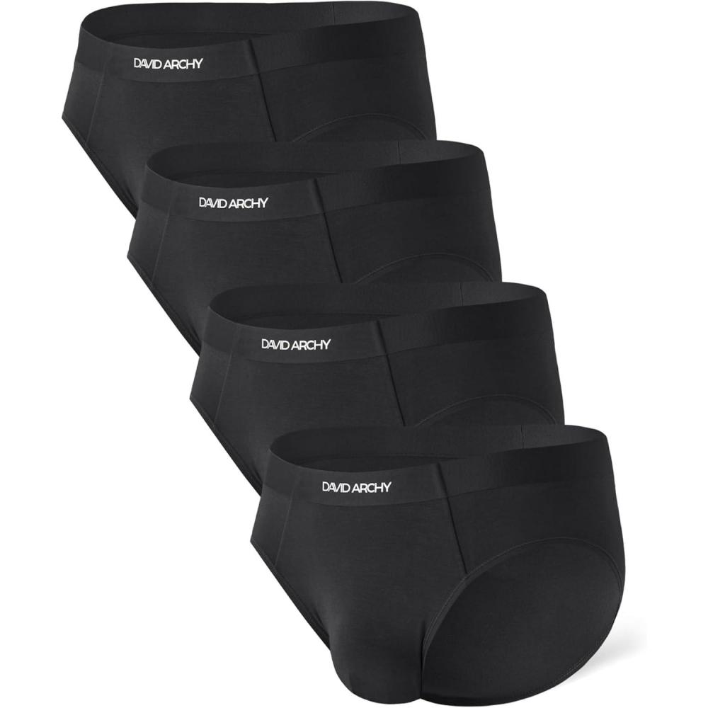 DAVID ARCHY Men’s Seamless Bamboo Rayon Briefs, Breathable Soft Underwear with No-Fly Pouch 4-Pack(Black)