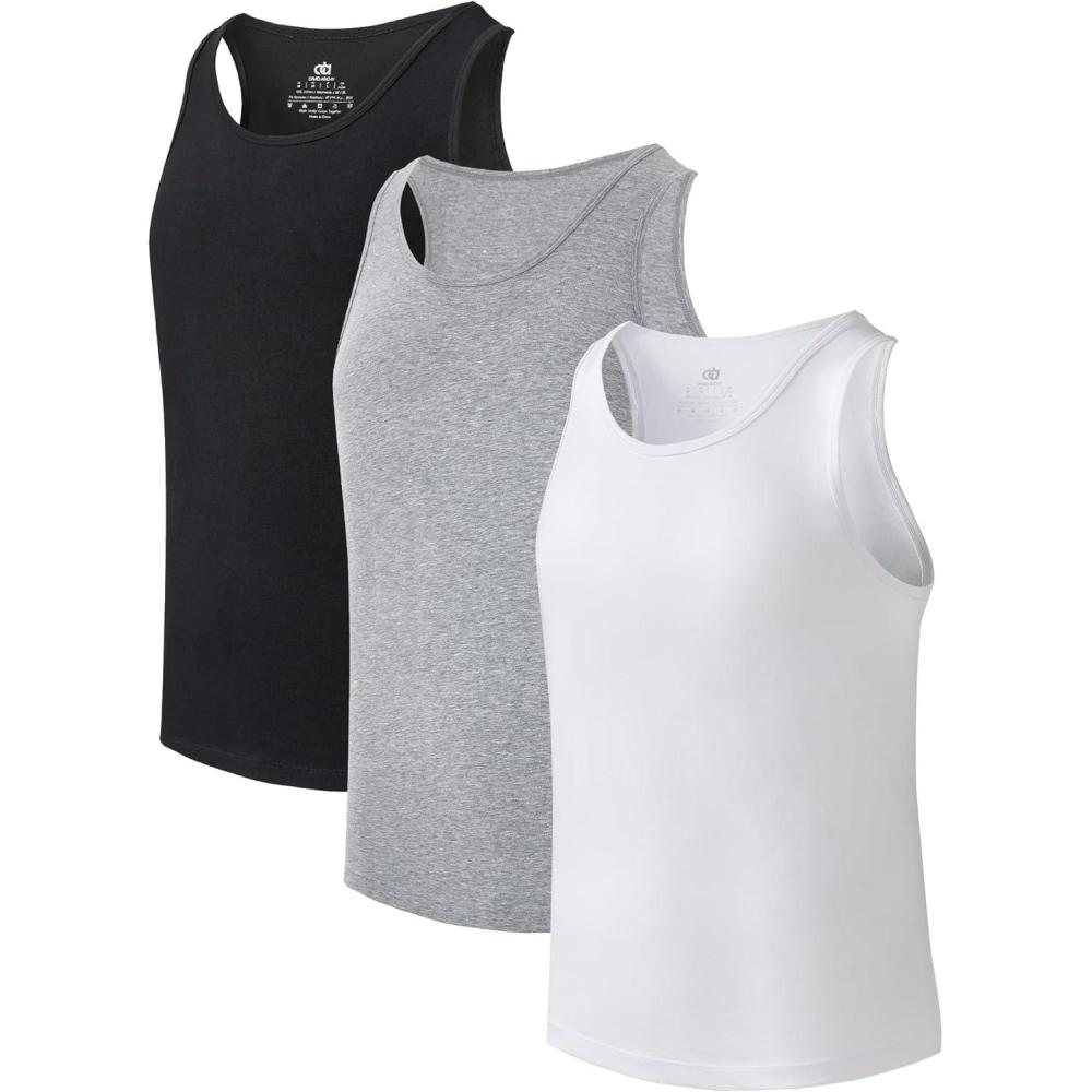 DAVID ARCHY Men's Tank Top Bamboo Rayon Undershirts Tank Shirt Moisture-Wicking A-Shirt for Men, 3 or 5 Pack(White + Heather Gray + Black)