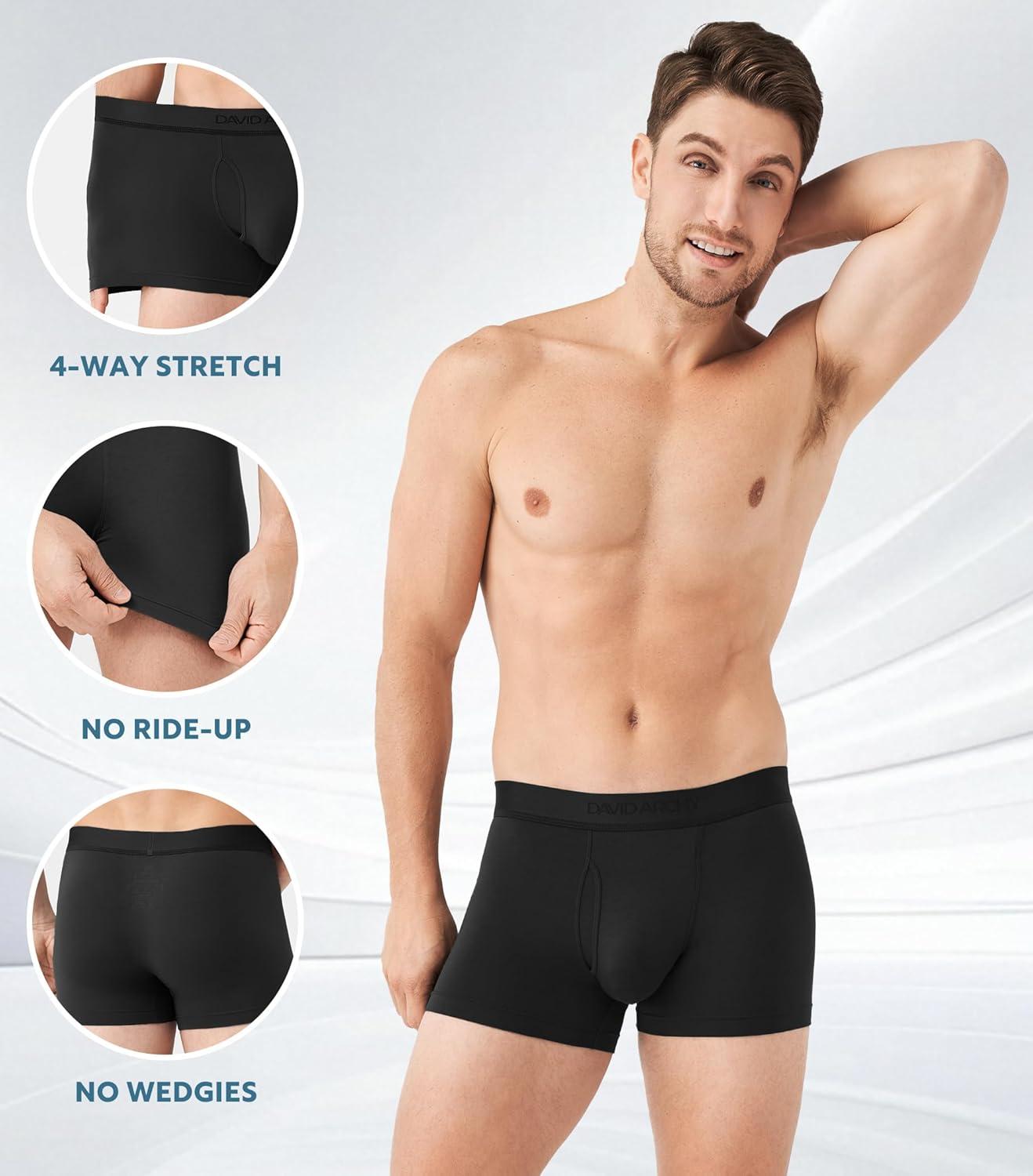 DAVID ARCHY Men’s Trunks Underwear Modal Support Pouch with Fly Ultra Soft Breathable Men’s Underwear 4 Pack(Black)