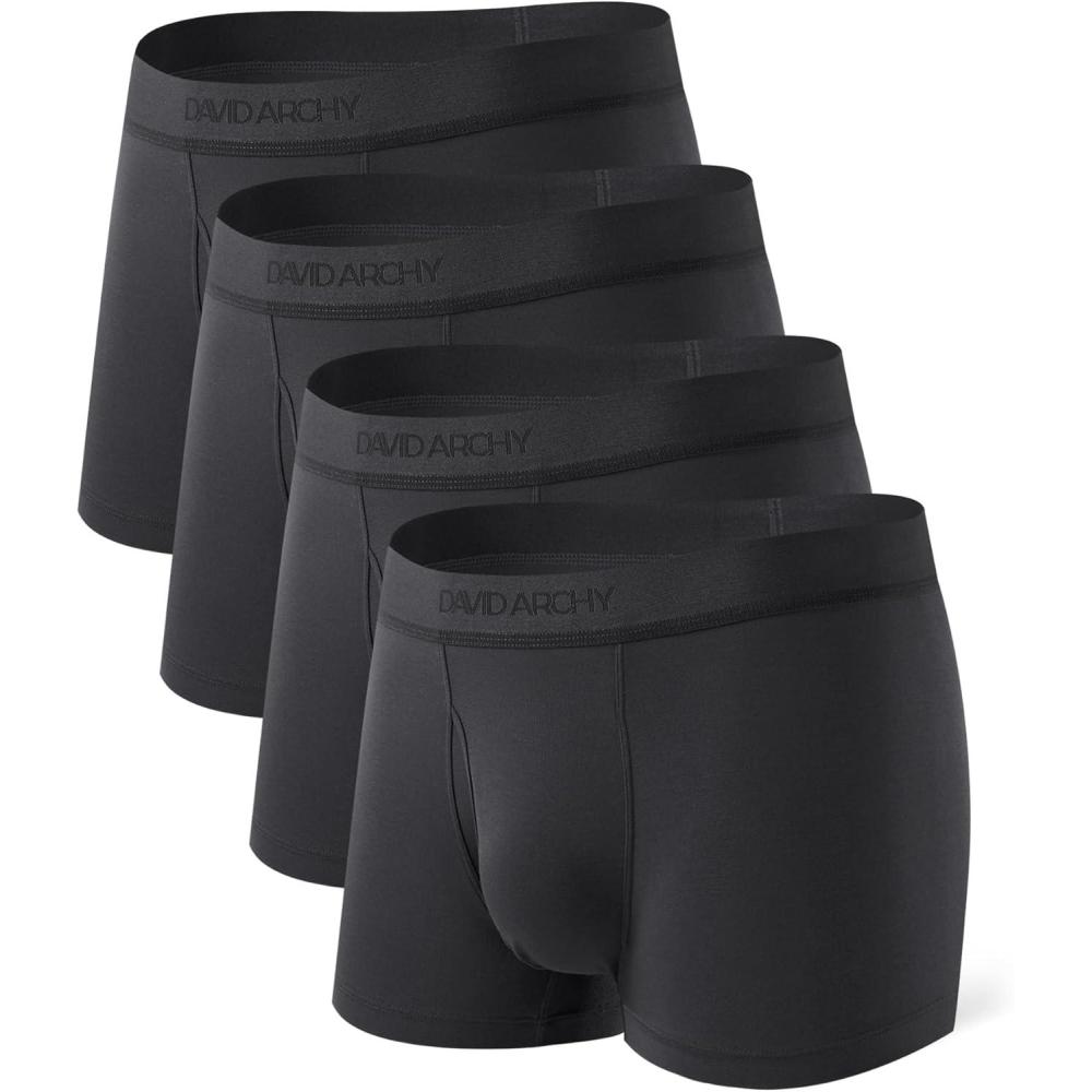 imageDAVID ARCHY Mens Trunks Underwear Modal Support Pouch with Fly Ultra Soft Breathable Mens Underwear 4 PackBlack