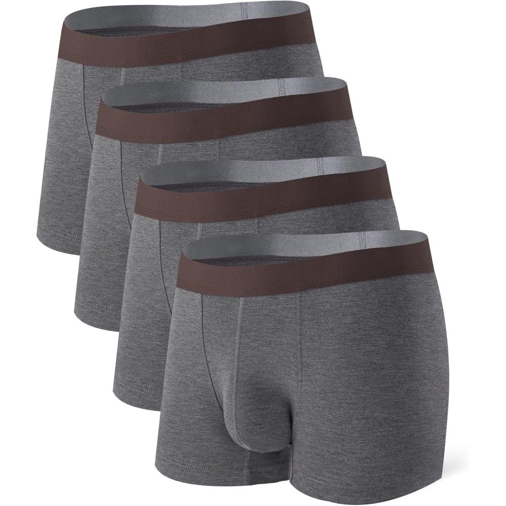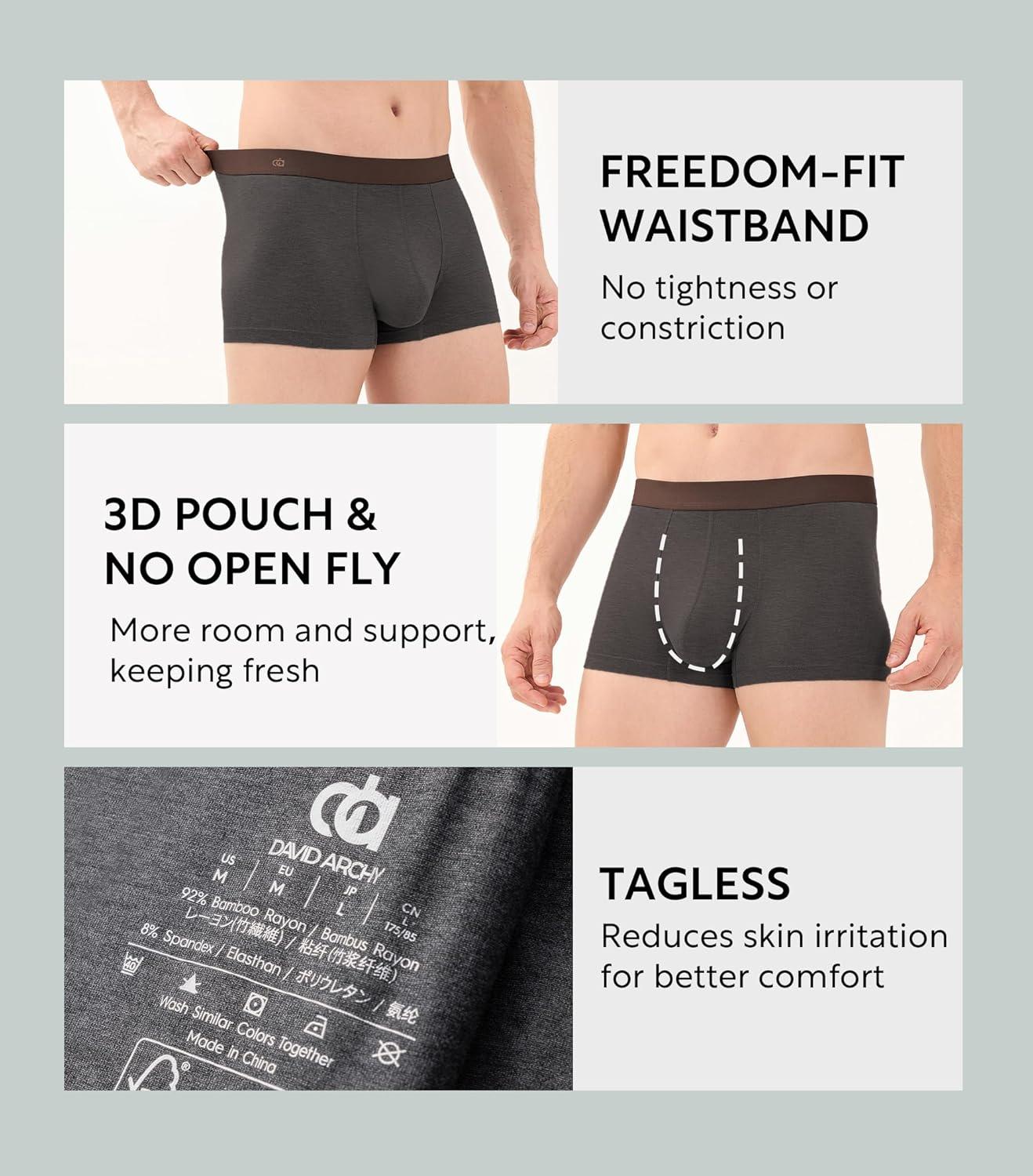 DAVID ARCHY Mens Trunks Underwear Soft Breathable Rayon Made from Bamboo for Men No Fly Pouch 4-Pack(Dark Grey)