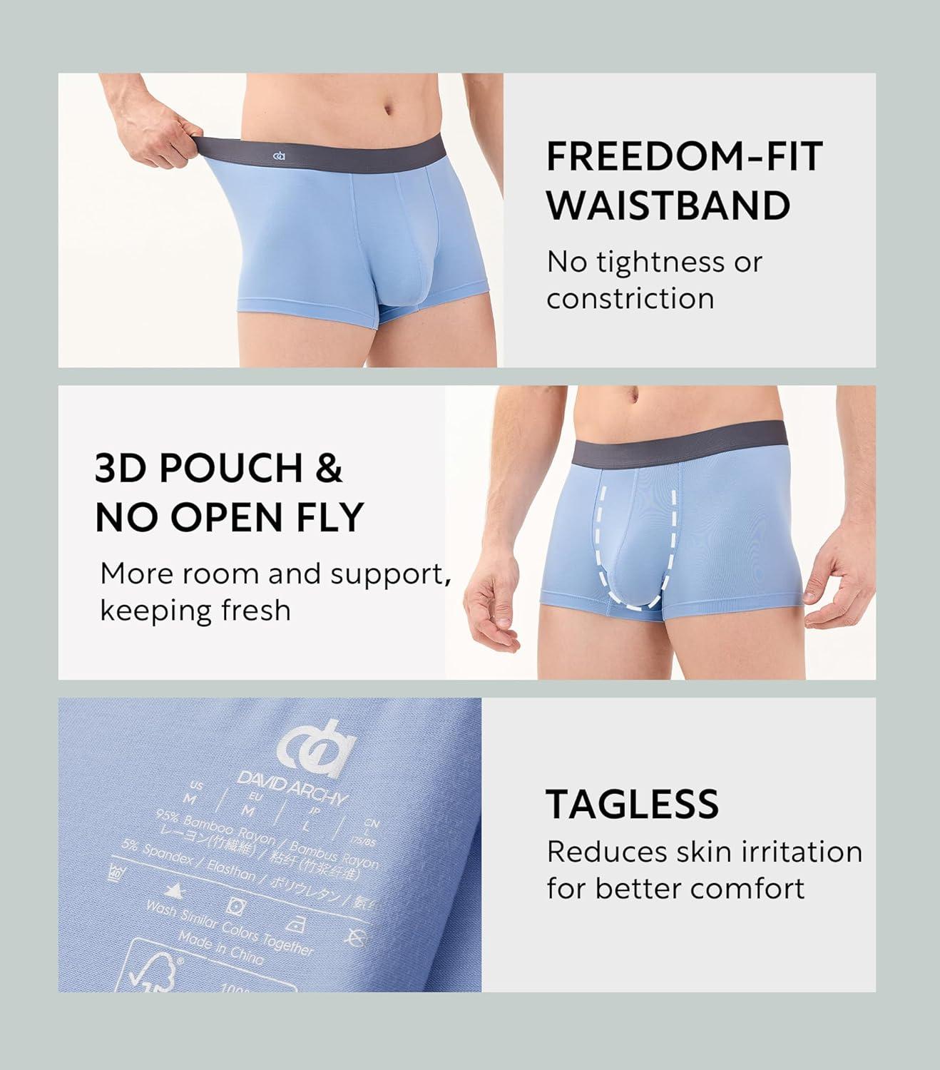 DAVID ARCHY Mens Trunks Underwear Soft Breathable Rayon Made from Bamboo for Men No Fly Pouch 4-Pack(Light Blue Grey Dark Purple Grey Grey Green Dark Coffee Grey)