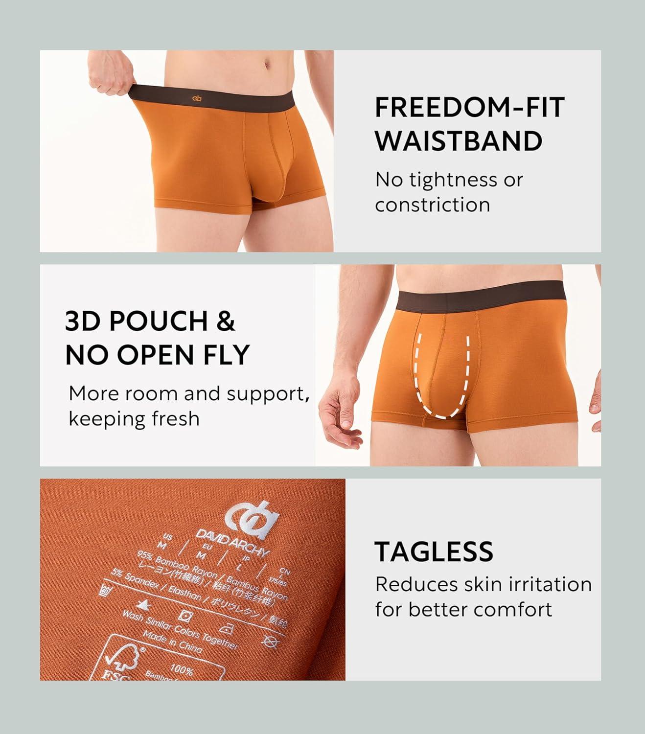 Don’t wait, get up to 50% off on DAVID ARCHY Mens Trunks Underwear Soft Breathable Rayon Made from Bamboo for Men No Fly Pouch 4-Pack(Mon Blue Fri Blue Wed Green Thu Orange Sun Dark Grape Purple Sat Red Tue Yellow) during our end-of-season sale event.