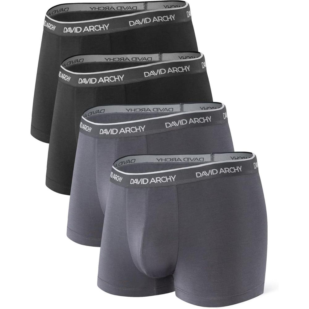 DAVID ARCHY Mens Trunks Underwear Soft Breathable Rayon Made from Bamboo Trunk No Fly Pouch(A Black/Dark Gray-4 Pack)