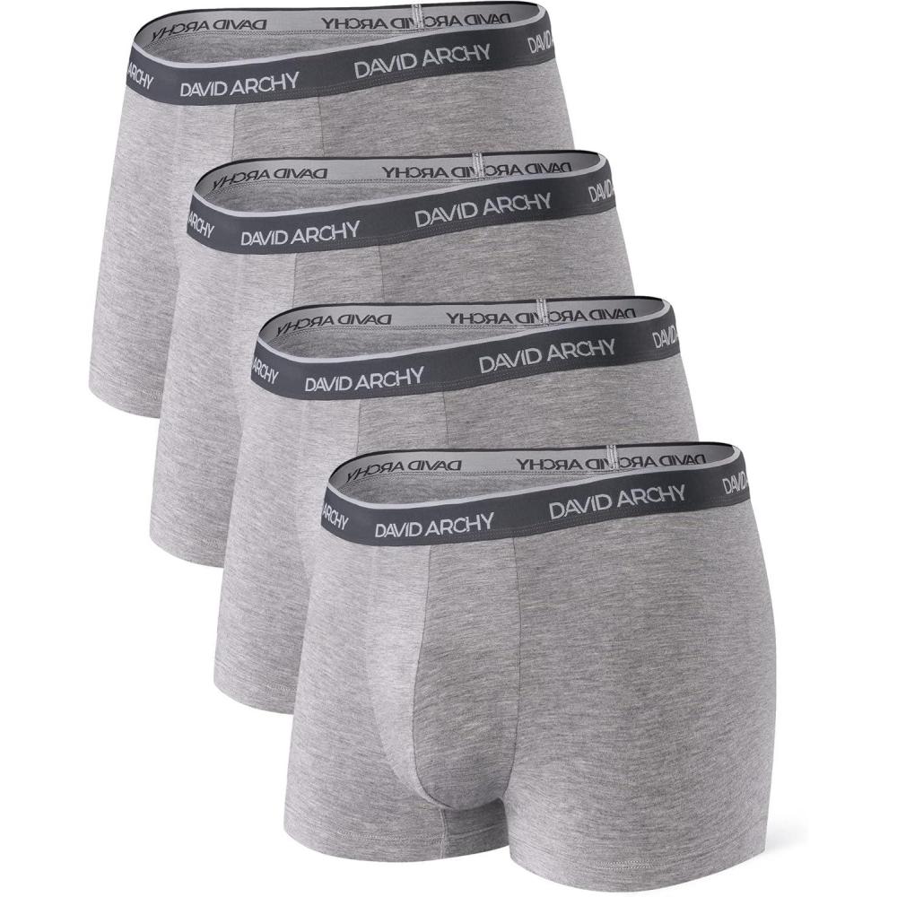 DAVID ARCHY Mens Trunks Underwear Soft Breathable Rayon Made from Bamboo Trunk No Fly Pouch(A Heather Gray-4 Pack)
