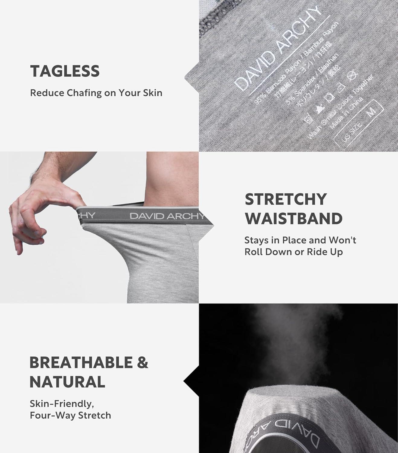 DAVID ARCHY Mens Trunks Underwear Soft Breathable Rayon Made from Bamboo Trunk No Fly Pouch(A Heather Gray-4 Pack)