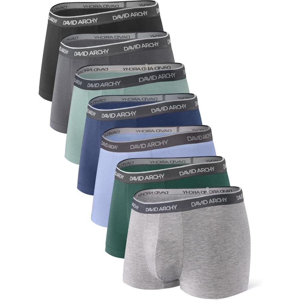 DAVID ARCHY Mens Trunks Underwear Soft Breathable Rayon Made from Bamboo Trunk No Fly Pouch(A Multicoloured-7 Pack)