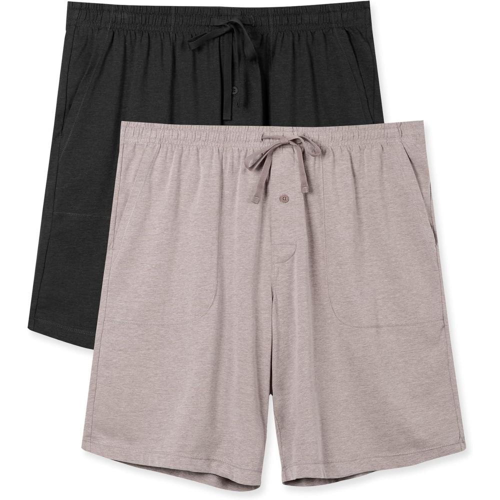 DAVID ARCHY Men’s Ultra Soft & Quick Dry Sleep Shorts Cotton Blend Pajama Shorts with Pockets and Fly, 2 Pack(Black/Heather Dark Gray)