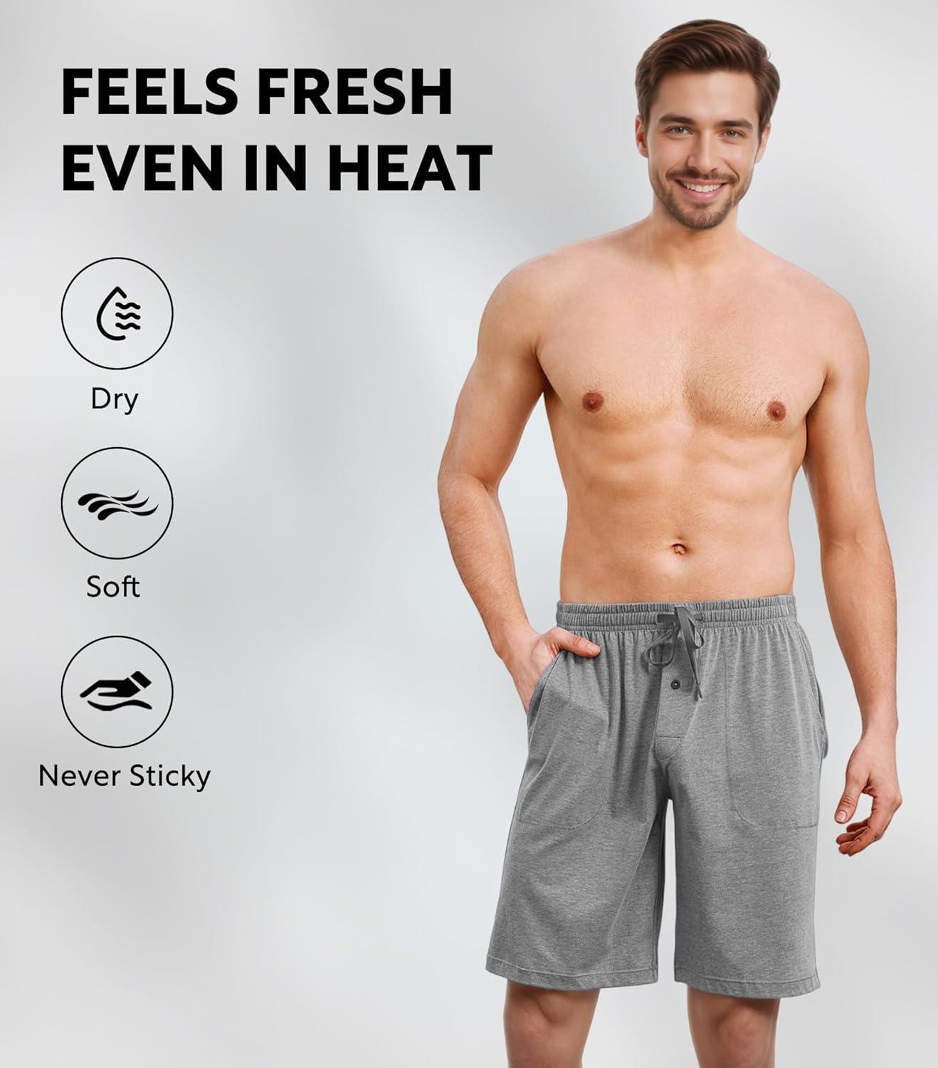 DAVID ARCHY Men’s Ultra Soft & Quick Dry Sleep Shorts Cotton Blend Pajama Shorts with Pockets and Fly, 2 Pack(Heather Blue/Heather Gray)