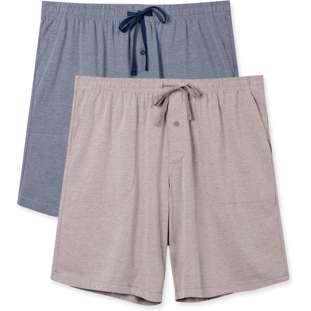 DAVID ARCHY Men’s Ultra Soft & Quick Dry Sleep Shorts Cotton Blend Pajama Shorts with Pockets and Fly, 2 Pack(Heather Dark Blue/Brown)