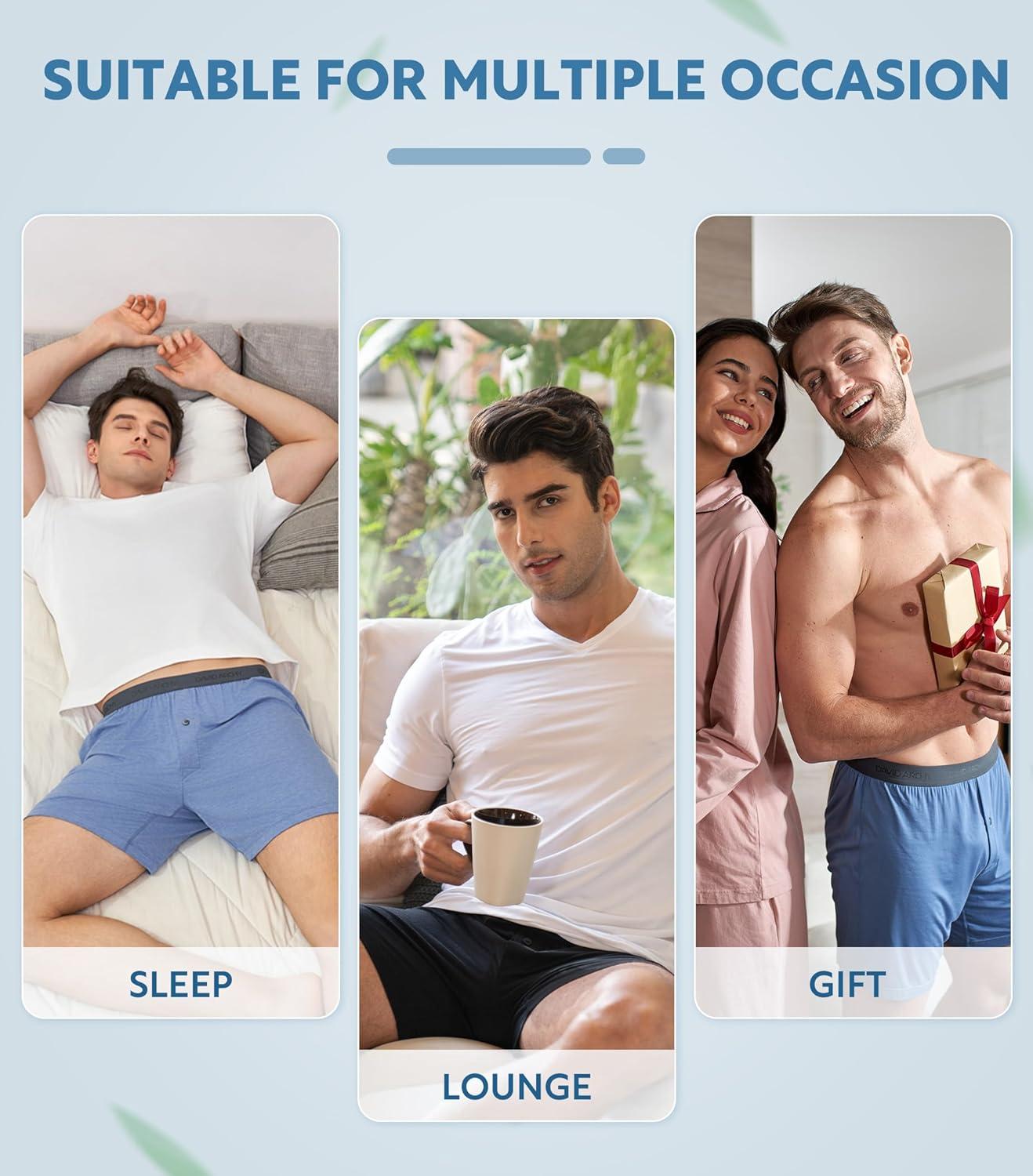 DAVID ARCHY Mens Underwear Bamboo Rayon Boxers for Men Breathable and Cool Men's Boxer Shorts with Button Fly 3 or 5 Pack(B3 Black/Navy Blue/Fri Blue/Gray Blue/Medium Gray)