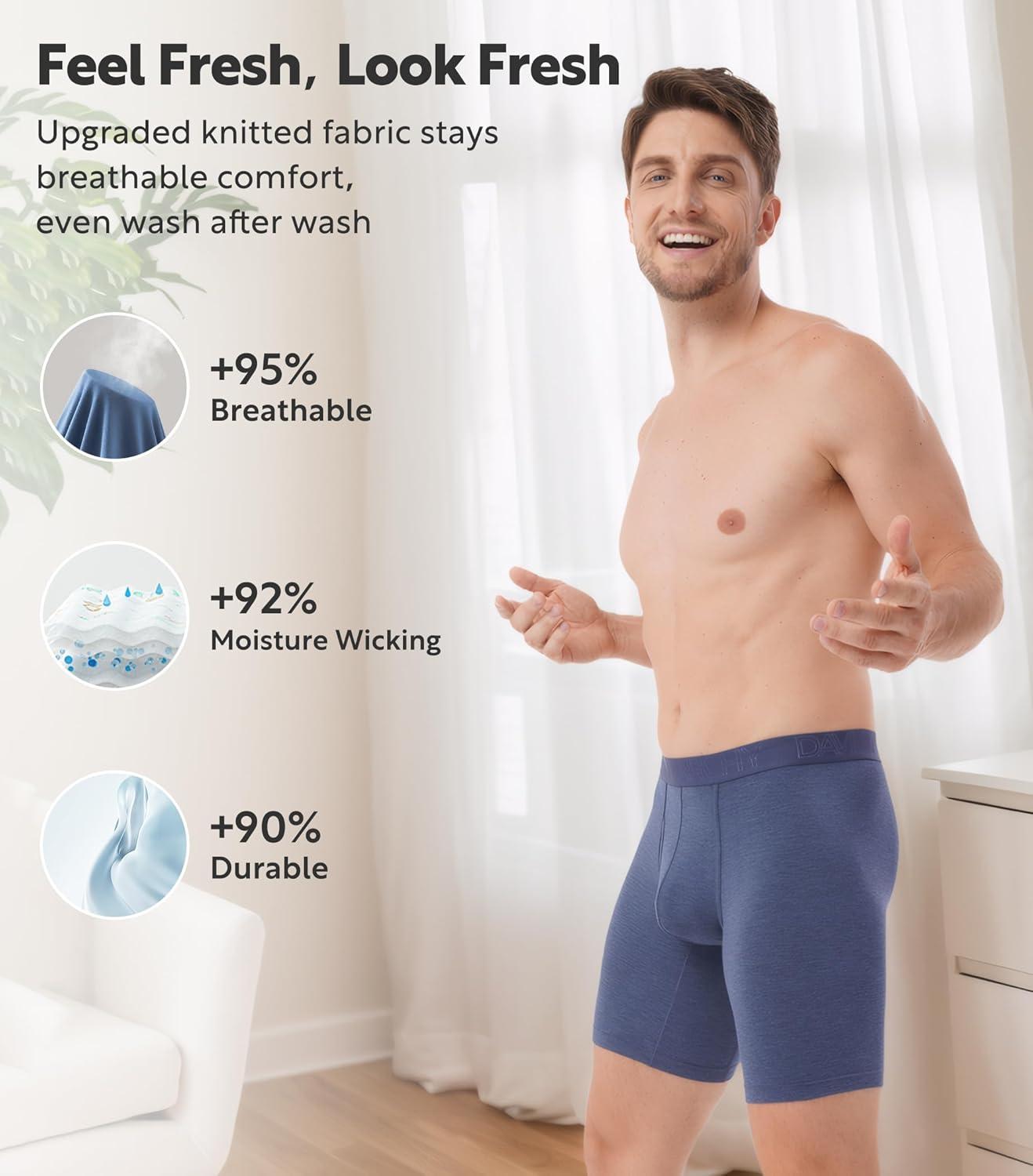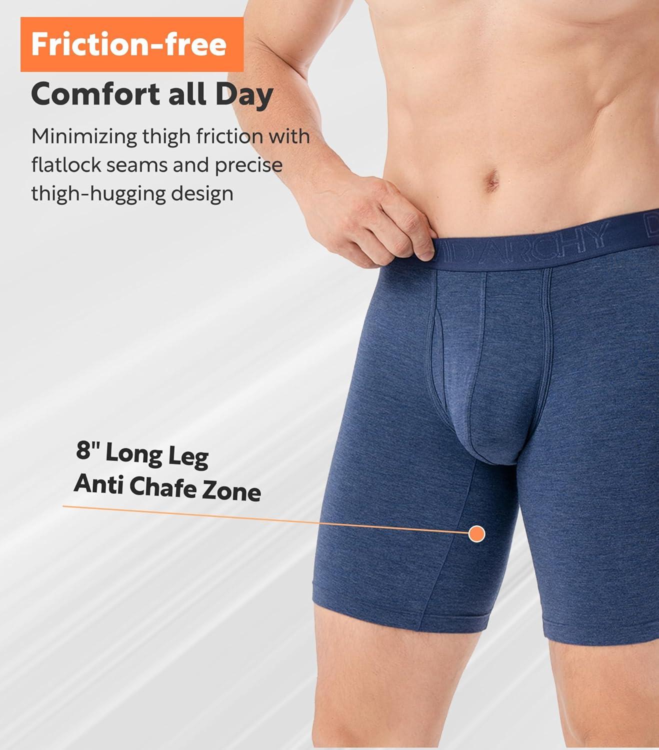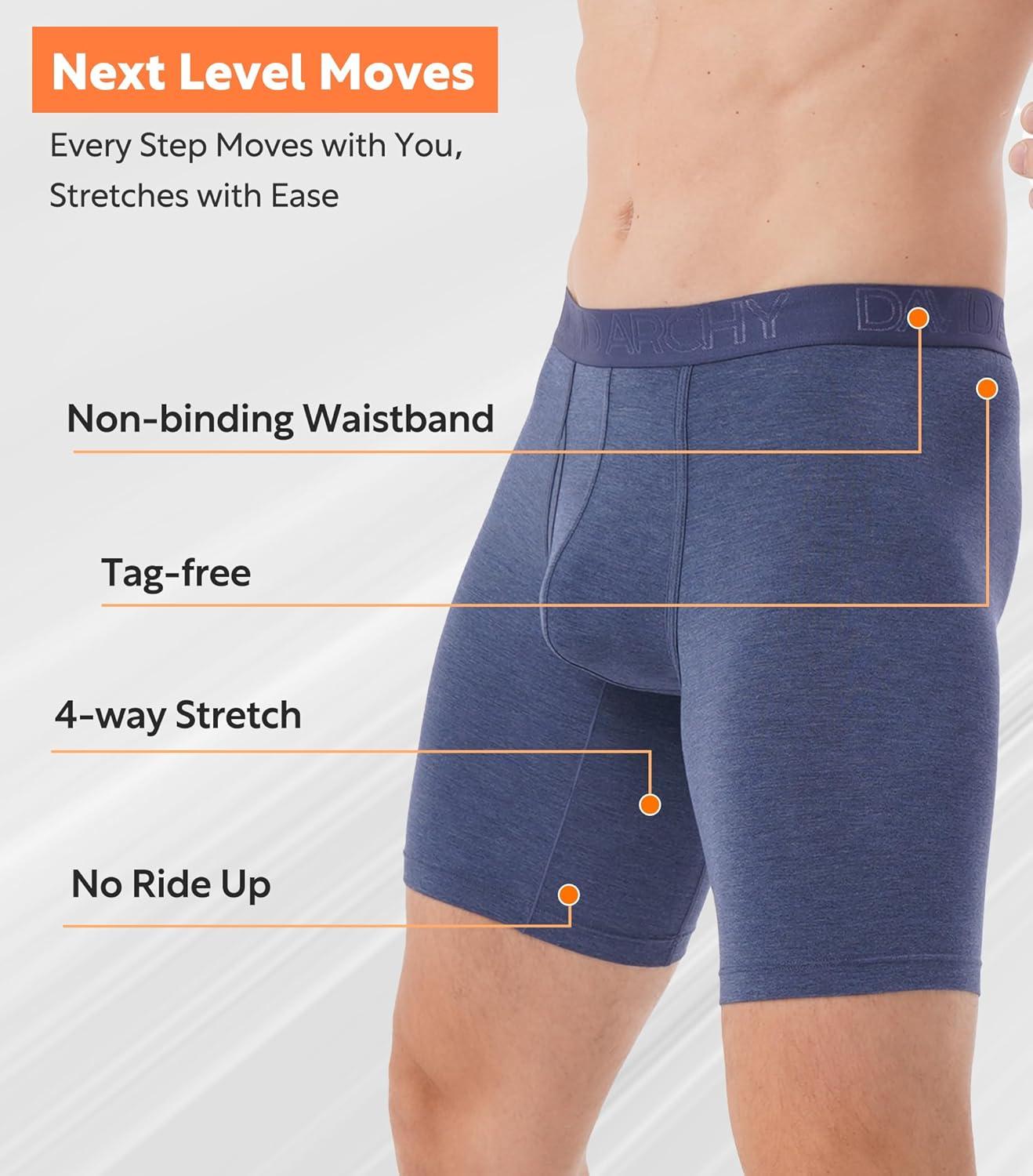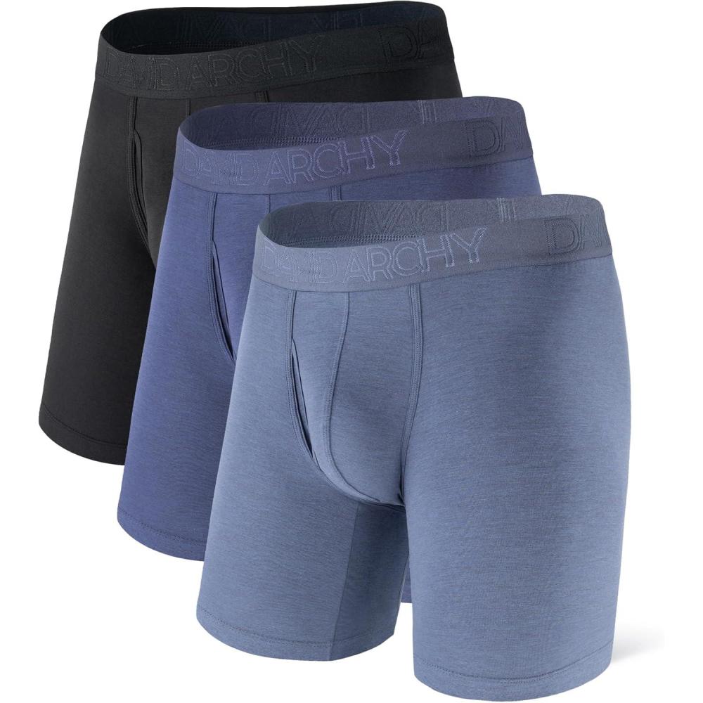 DAVID ARCHY Mens Underwear Boxer Briefs Breathable Soft Moisture-Wicking with Fly Underwear for Men Multipack(E3 Long Leg 8″ Black/Navy/Gray Blue 3 Pack)