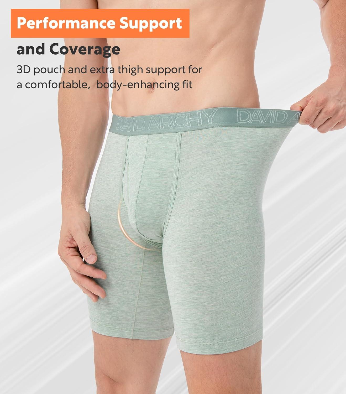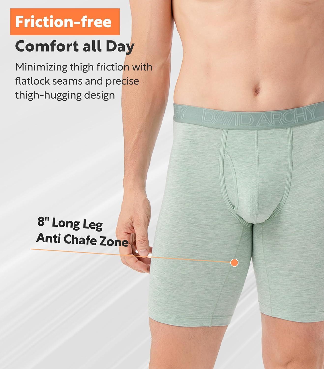 DAVID ARCHY Mens Underwear Boxer Briefs Breathable Soft Moisture-Wicking with Fly Underwear for Men Multipack(E5 Long Leg 8" Gray/Blue/Green 3 Pack)