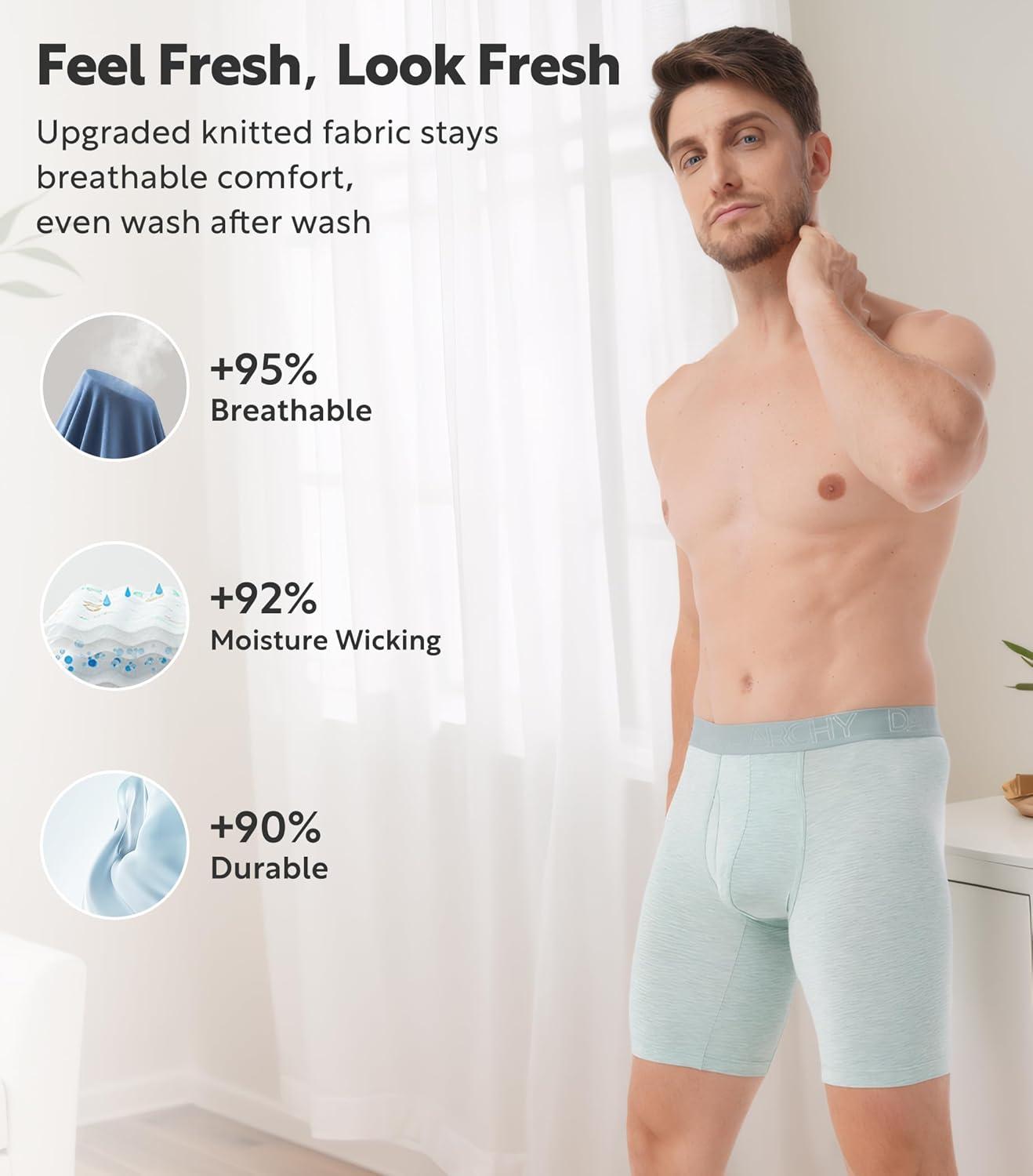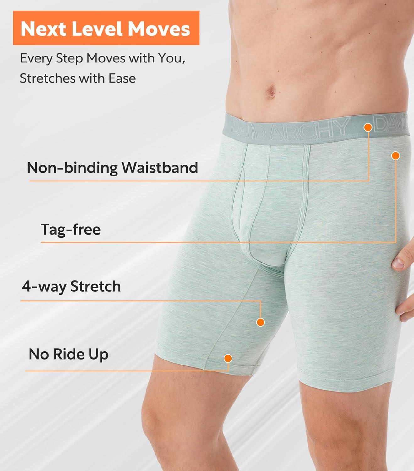 DAVID ARCHY Mens Underwear Boxer Briefs Breathable Soft Moisture-Wicking with Fly Underwear for Men Multipack(E5 Long Leg 8″ Gray/Blue/Green 3 Pack)